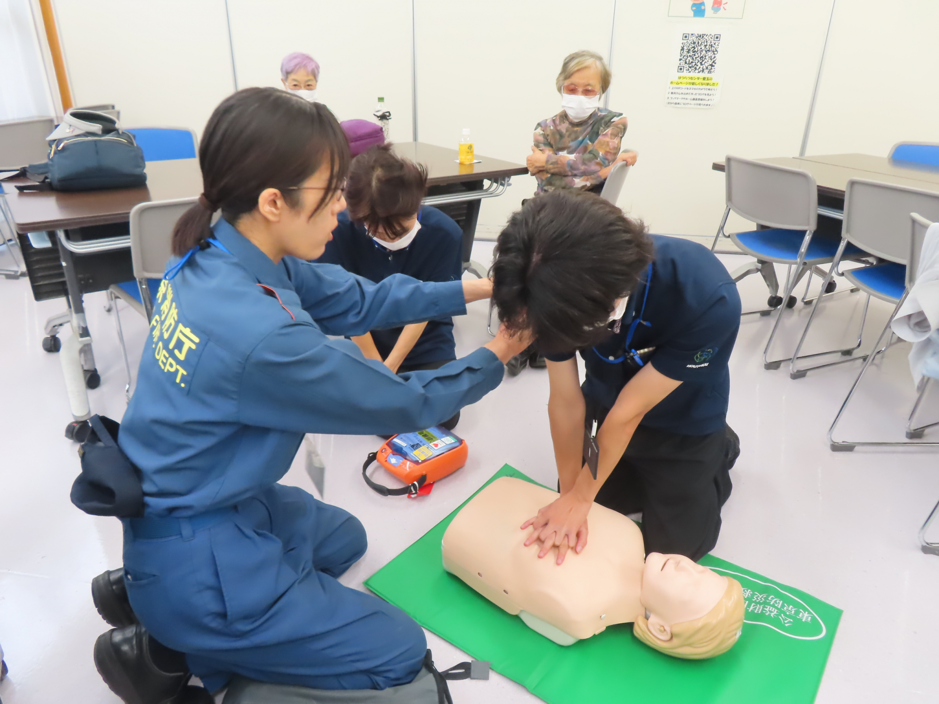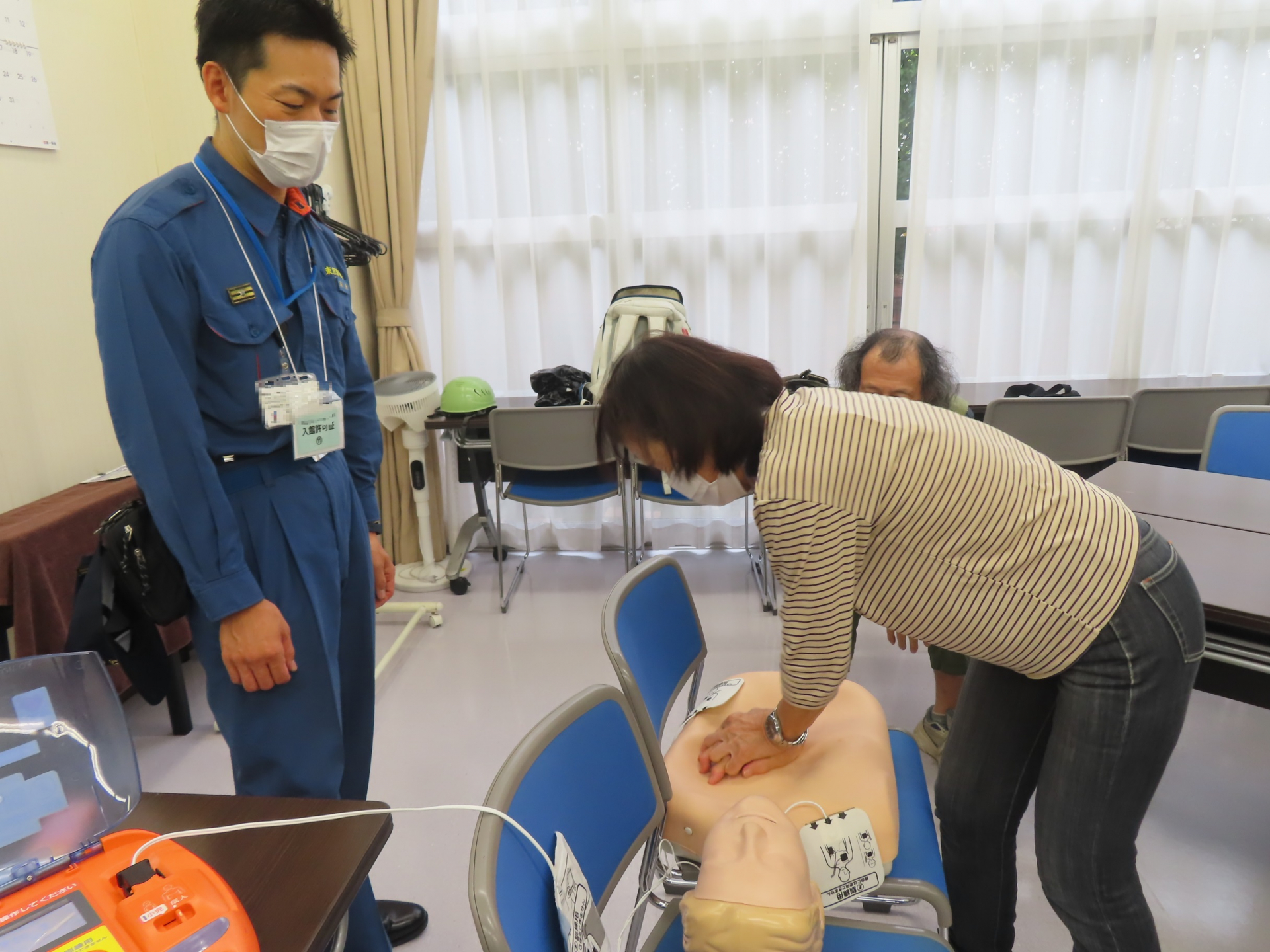 実際に体験すると、心臓マッサージにはかなり力がいる事がわかりますね。