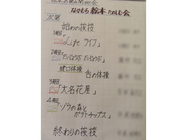 「なかむら絵本たのしむ会」のボランティア様4名の方をお迎えして開催しました。