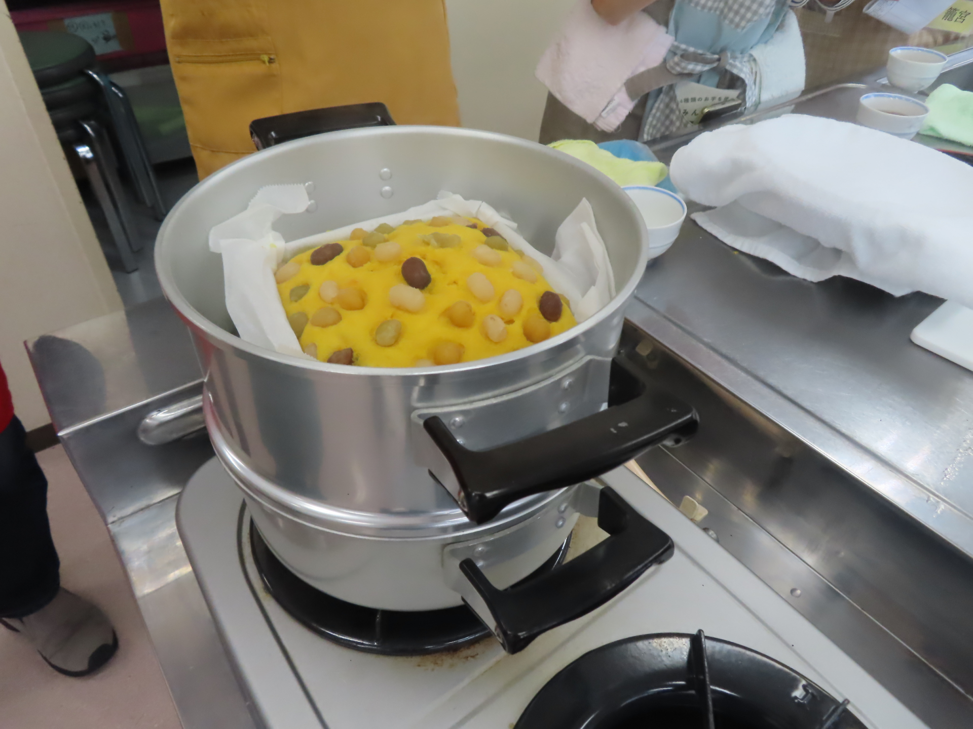 蒸し器で25分程蒸すとふっくらしっとり出来上がりです。