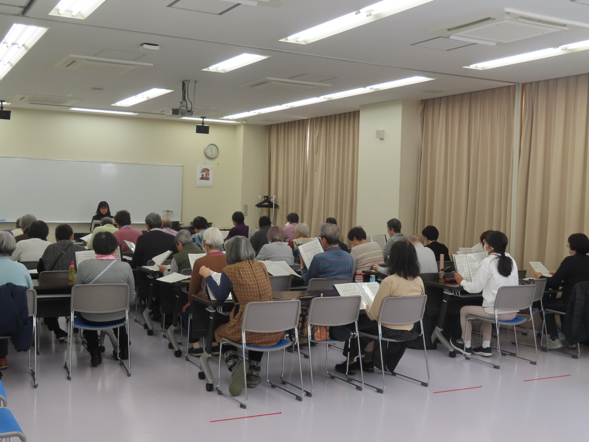 前回に新しい楽譜が配られ、新曲を練習しました。