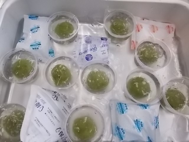 バットに並べて冷やしたら水まんじゅうの出来上がりです。