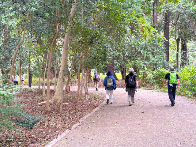 今回も外出事業となりました、目的地は江古田の森です(3キロ)と(5キロ)の2チームに途中で分かれ歩きました。