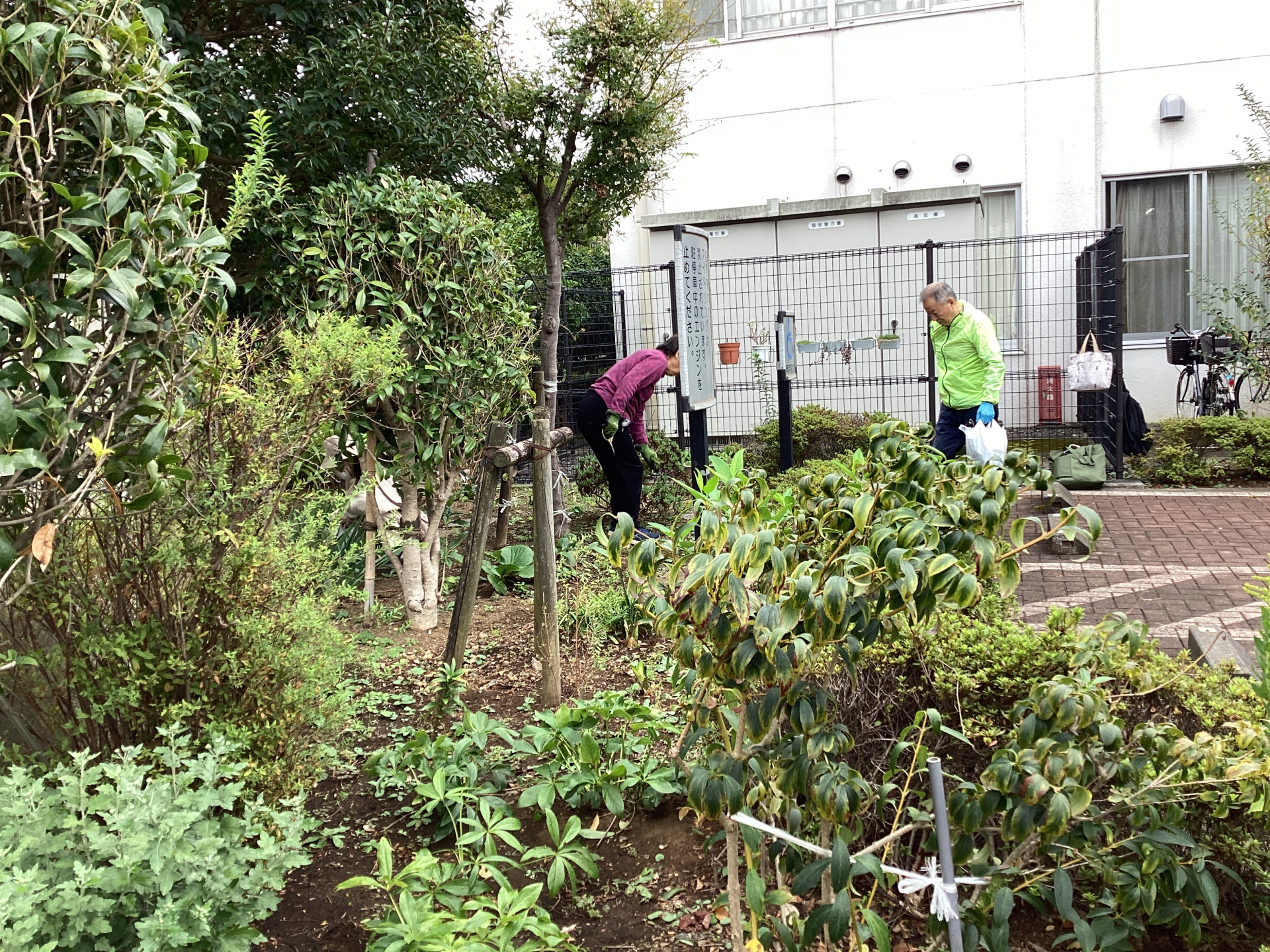 15日、フラワーボランティアさんと一緒に枯草や雑草取り、水やりなどして、みんなの花壇を整えました。
