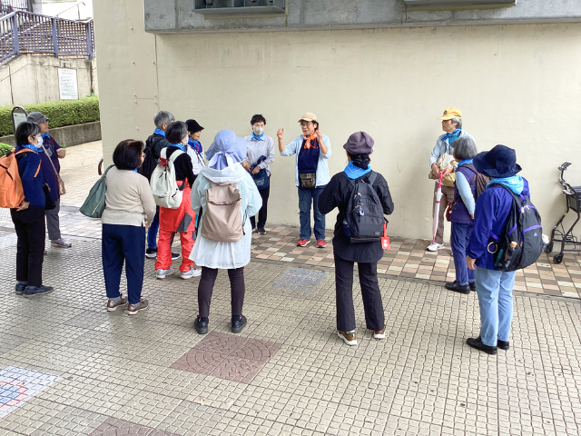 ↑”今日も元気よく歩いて行きましょうね、みなさんいいですか”山﨑職員も説明にチカラがはいります。