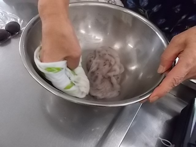 よく混ぜ合わせた生地を蒸し器で蒸します。