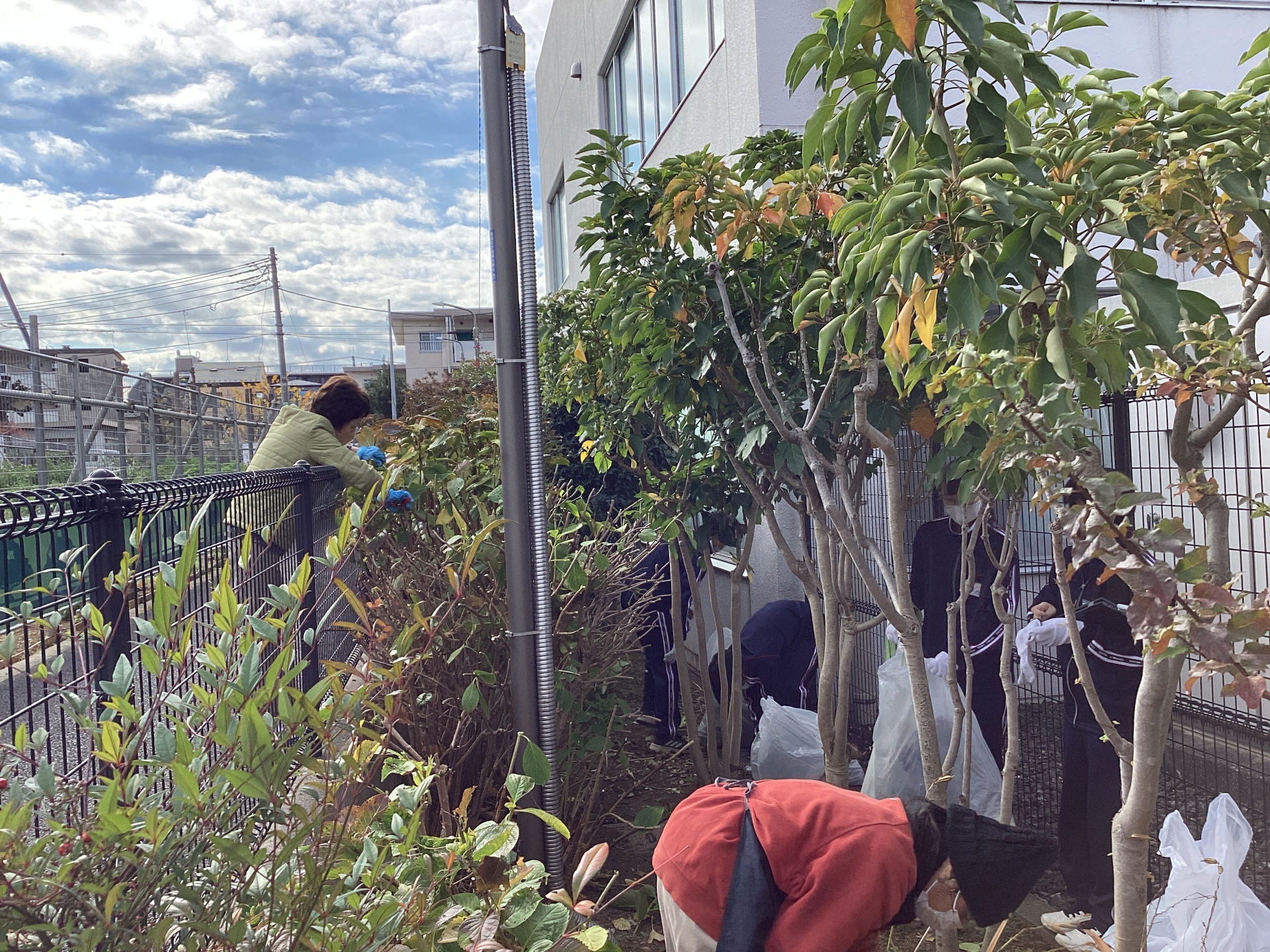枯草取り、剪定、雑草とりをしました。枝を束ねるのは大変です。