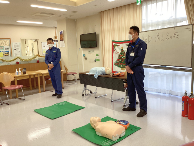 多くの利用者様もご参加くださり、消火訓練、AED操作を体験する事ができました。