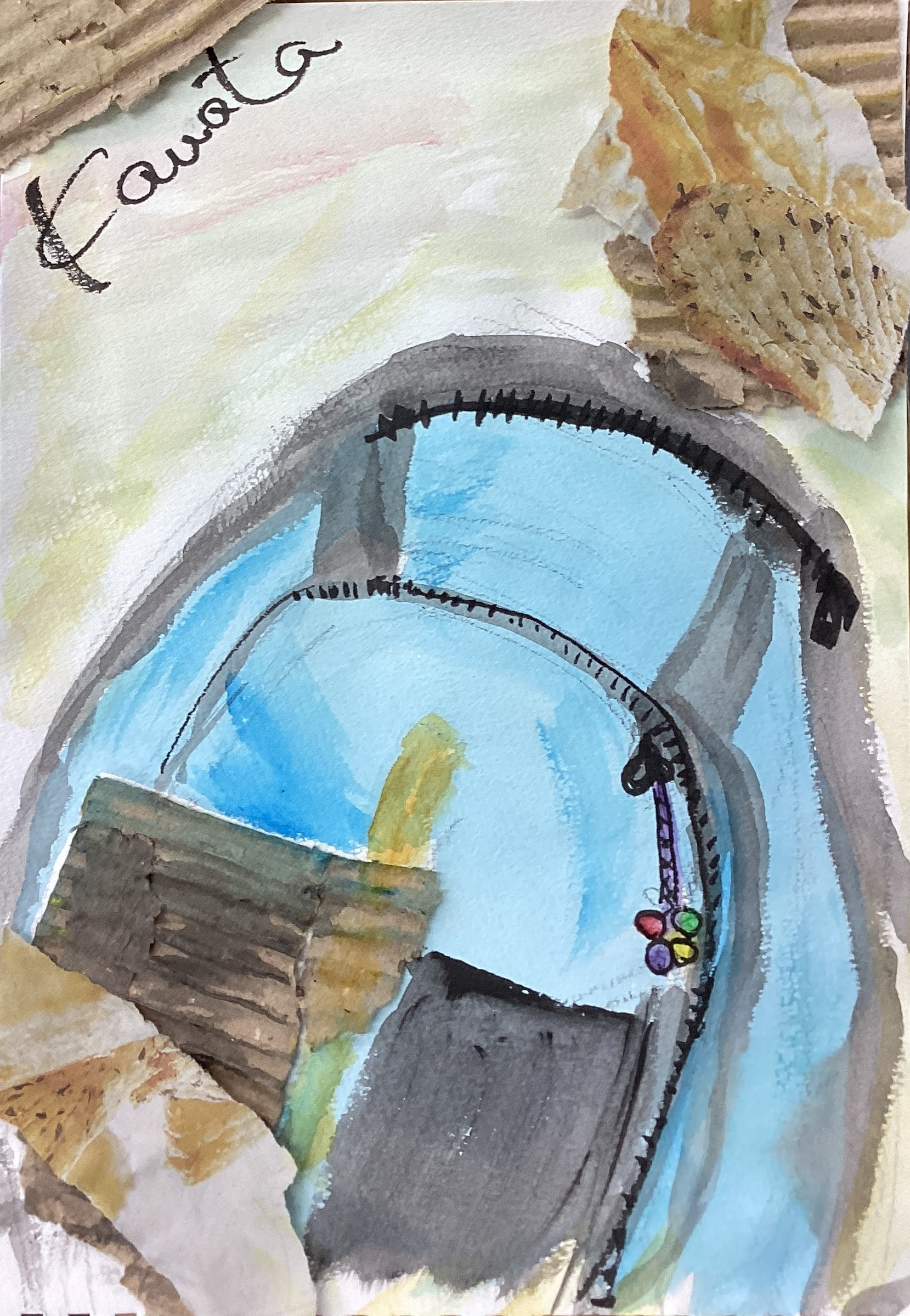 今回は、まず段ボールや新聞紙を台紙に貼ってから絵を描いて頂きました。