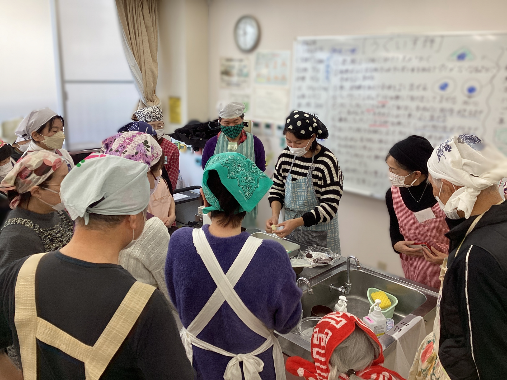 先生の説明付きデモンストレーションを見てから班に分かれて皆さんで作ります。