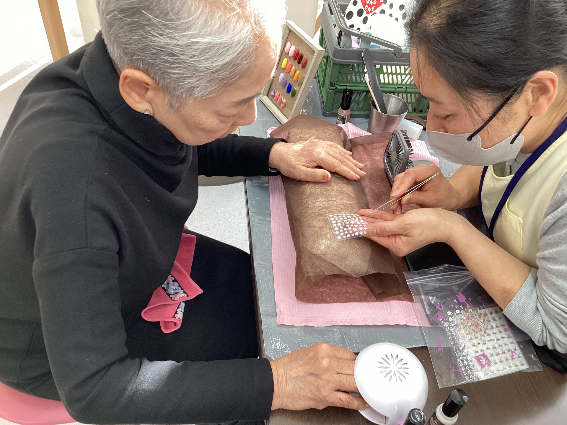 コーヒーを飲みながら、完成した指先をみんなで見せ合いっこ♪