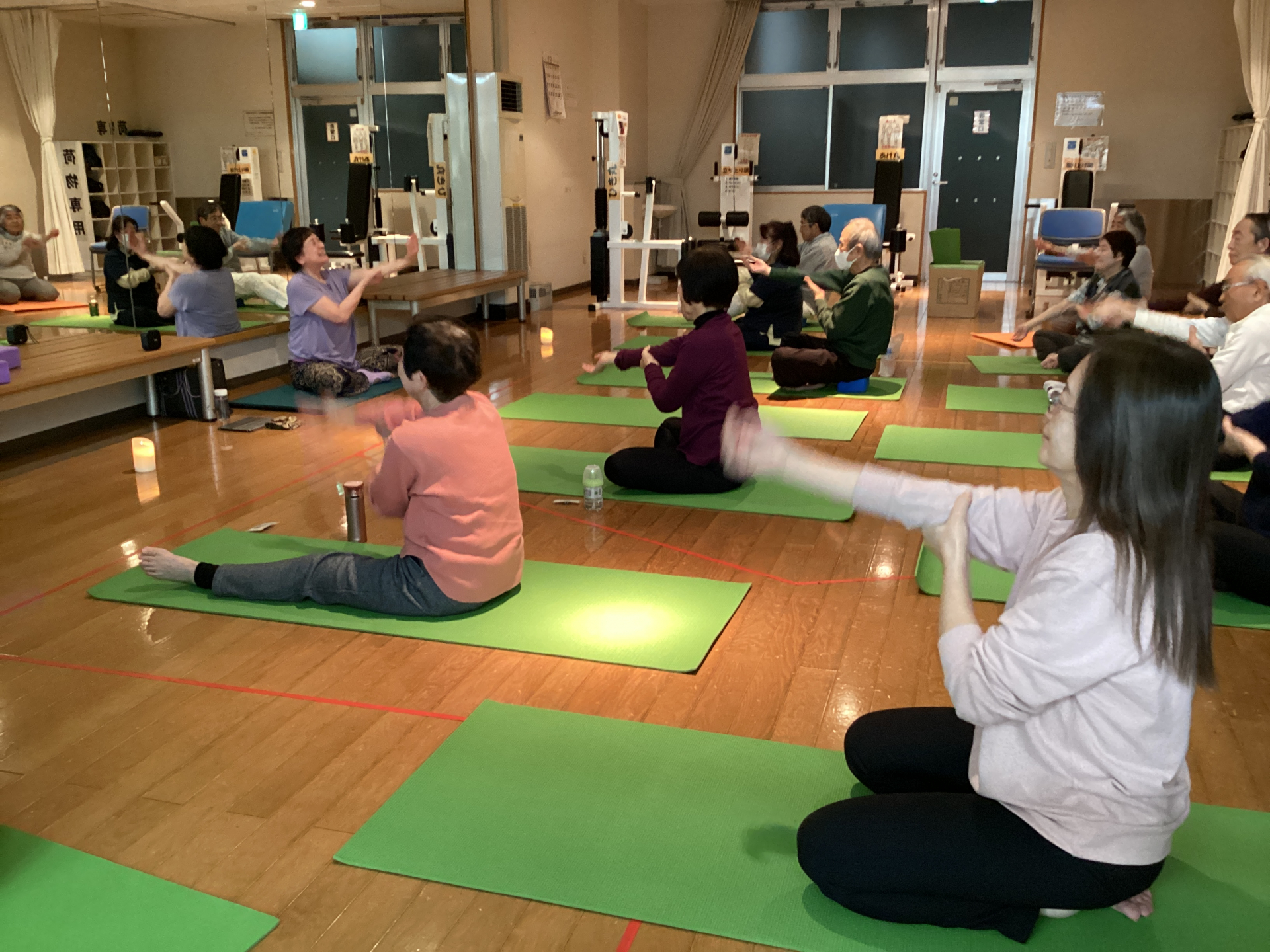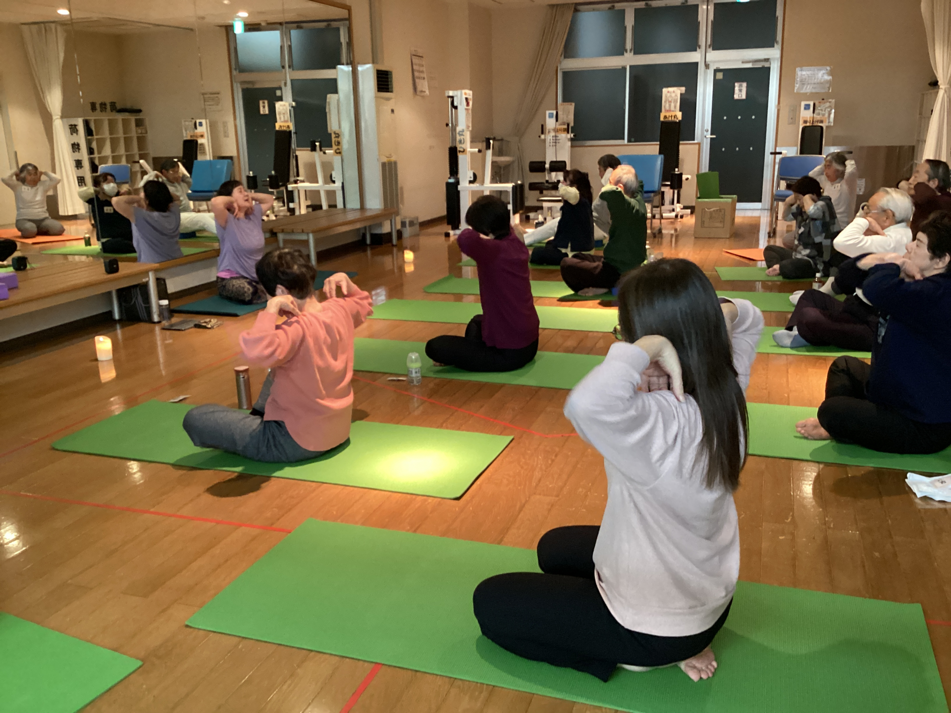 最後に照明を落としてマットに横になり、静かに瞑想の時間を取りました。