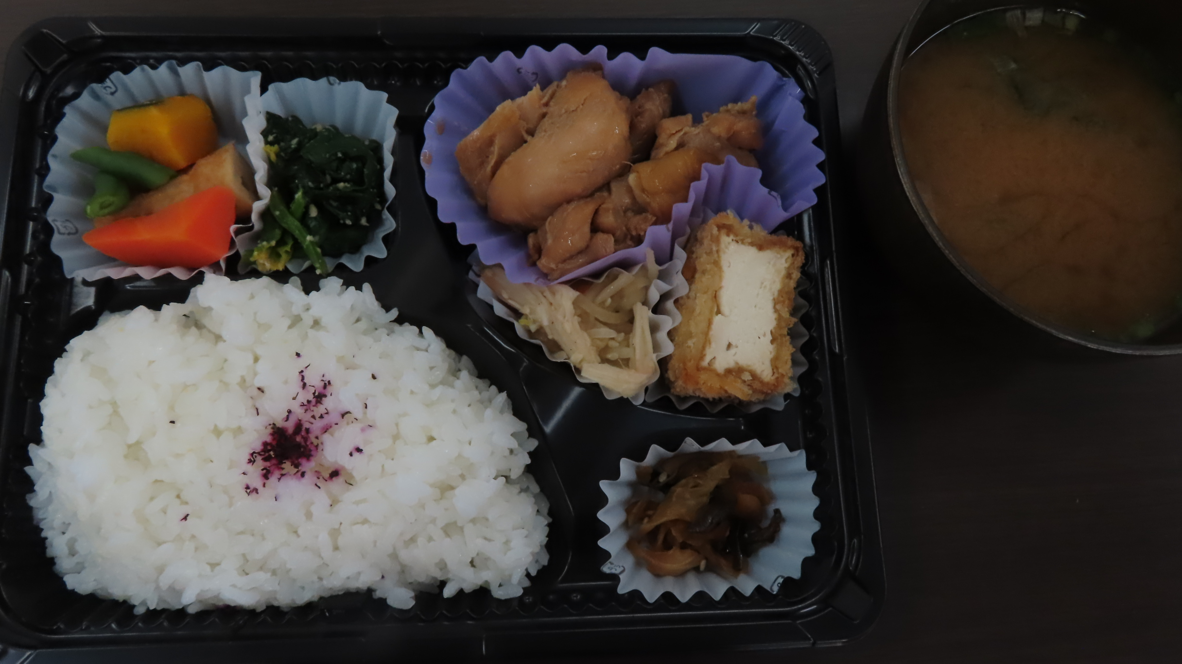 副菜は煮物、ナムル、厚揚げフライ、おひたし。
