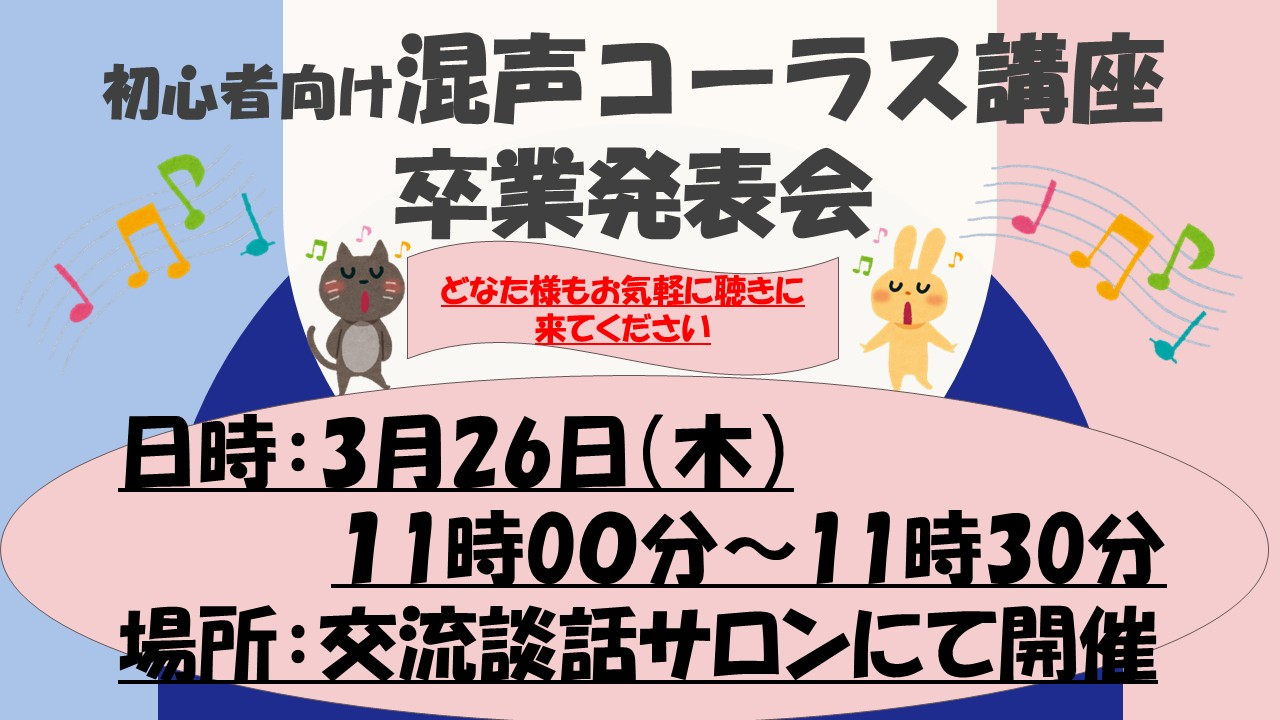 10月から始まった混声コーラス教室の練習成果を存分にお楽しみに下さい。