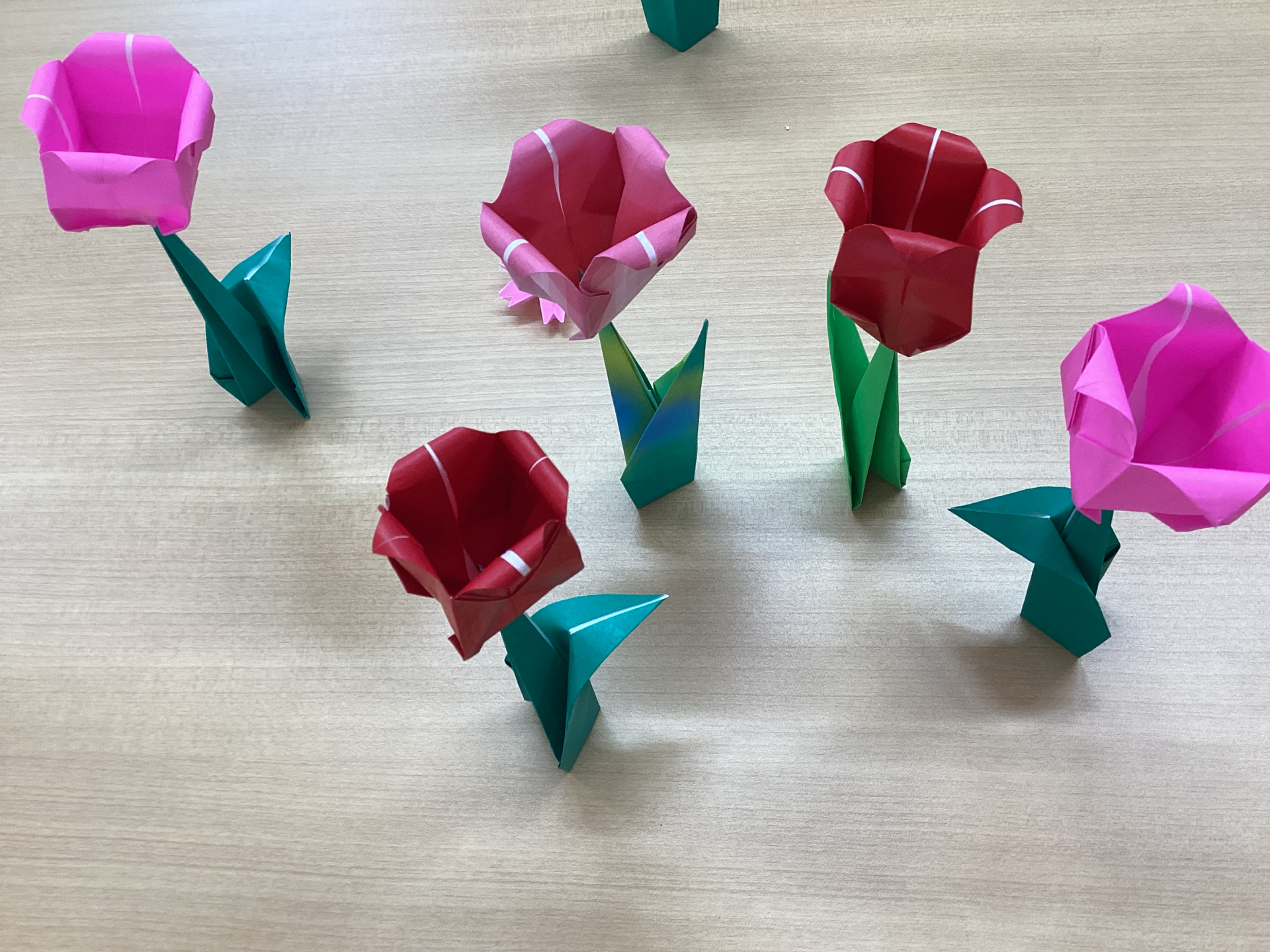 3月のサロン折り紙のテーマは、チューリップです。立体的な素敵なチューリップをつくりました。