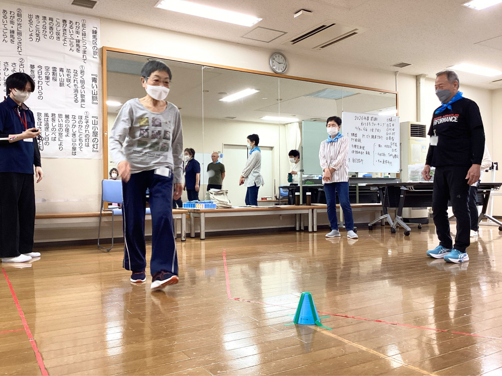 ・握力測定・開眼片足立ち・5回椅子立ち座り・タイムアップ&ゴー・5m通常歩行 自分が現在どの程度の体力があるのかを測定します。測定中はみなさま真剣な顔つきで、程よい緊張感のなか測定が行われました。