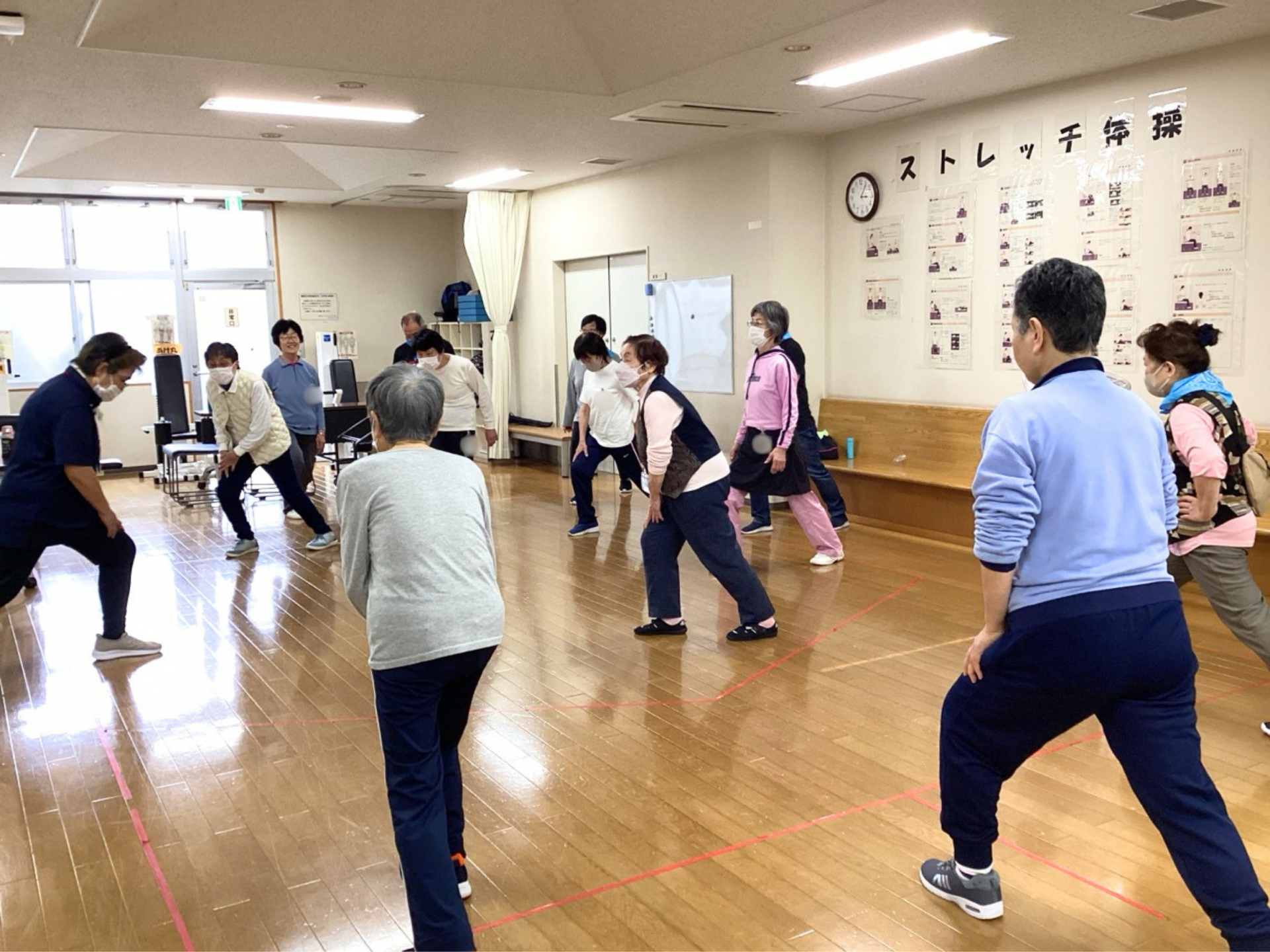 各自、自己紹介も終え、当初緊張していた表情も和んだところで、下肢の軽い筋トレとストレッチを行いました。
