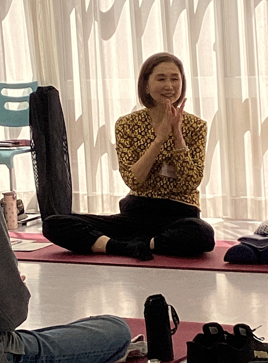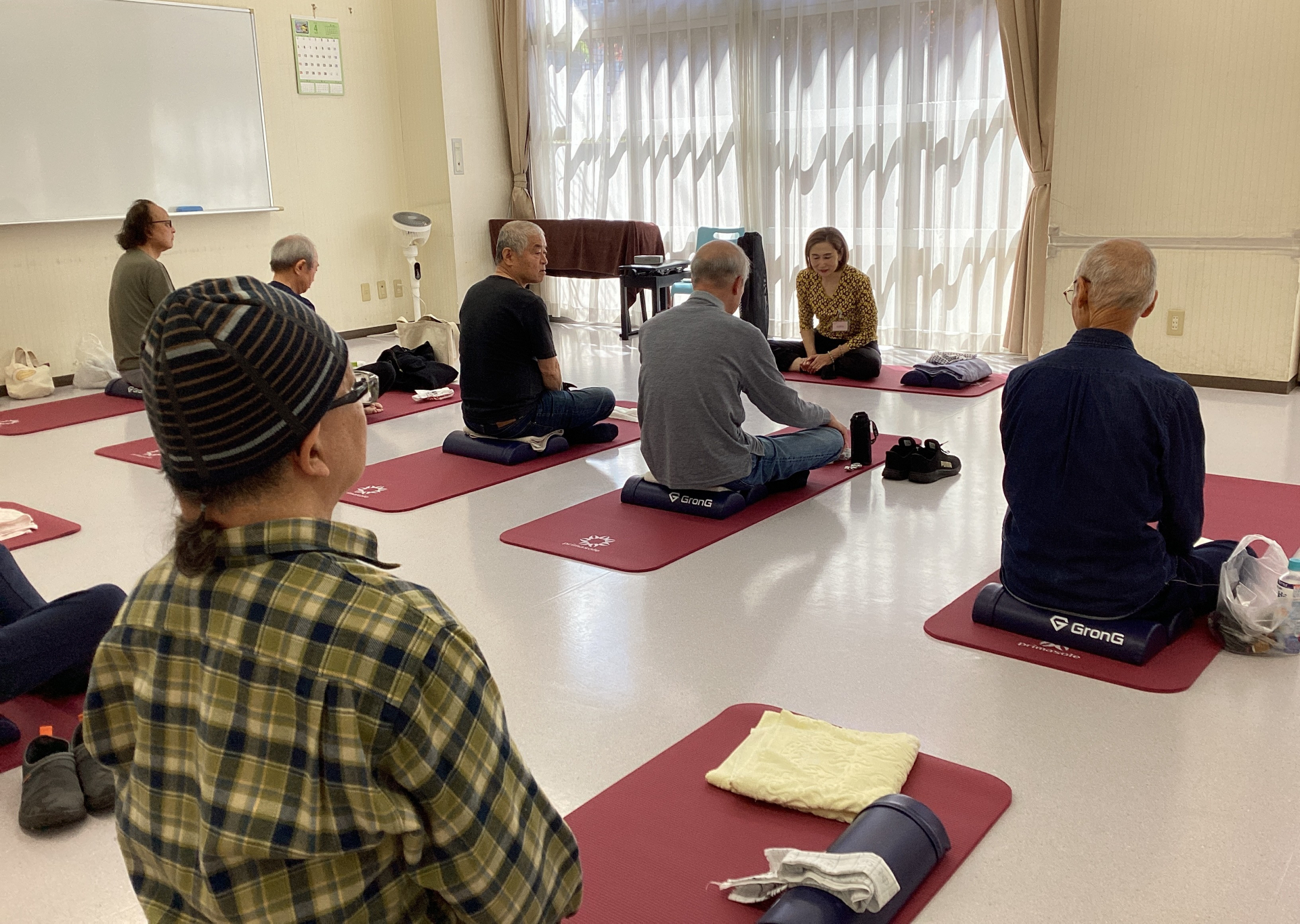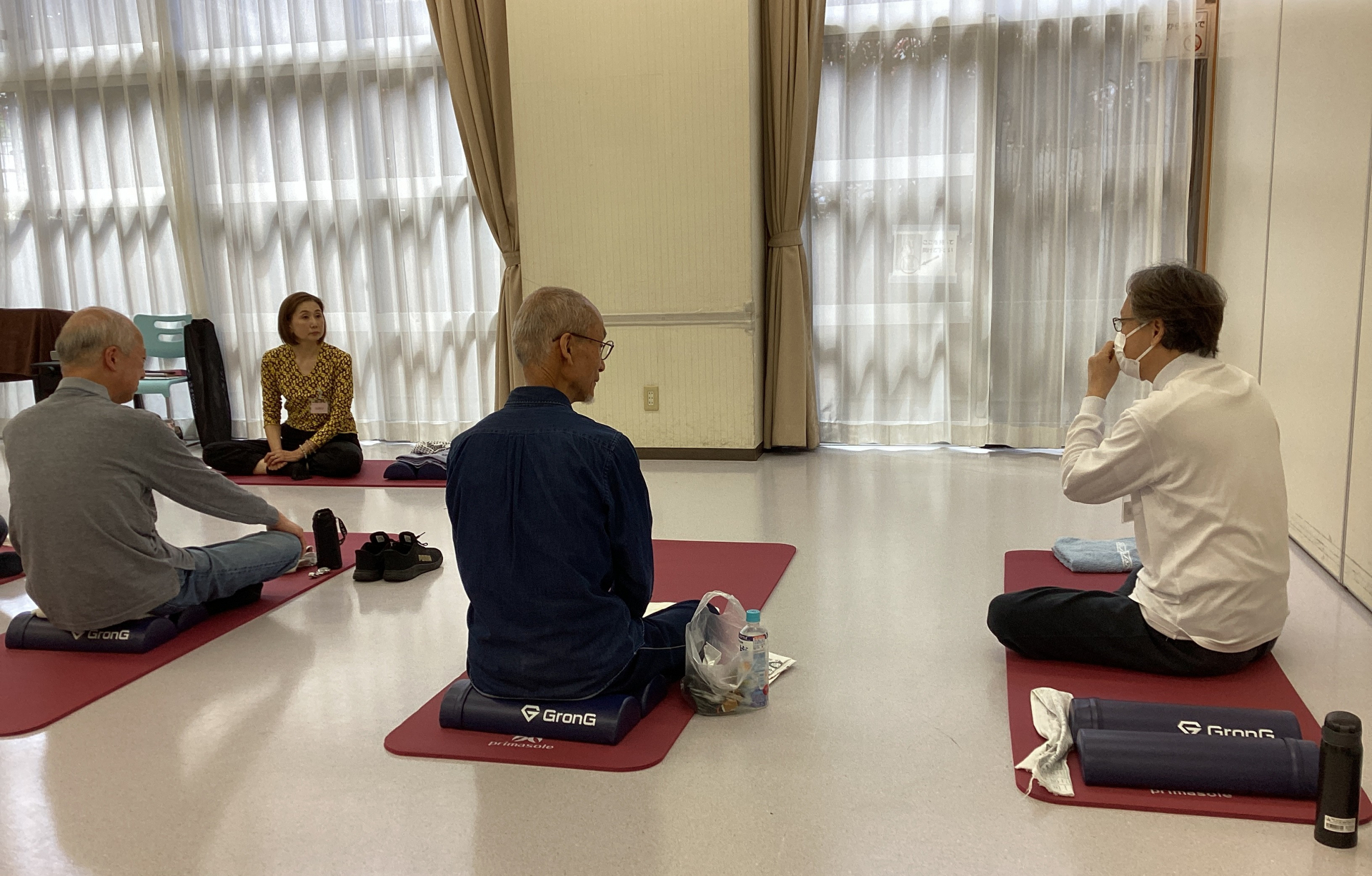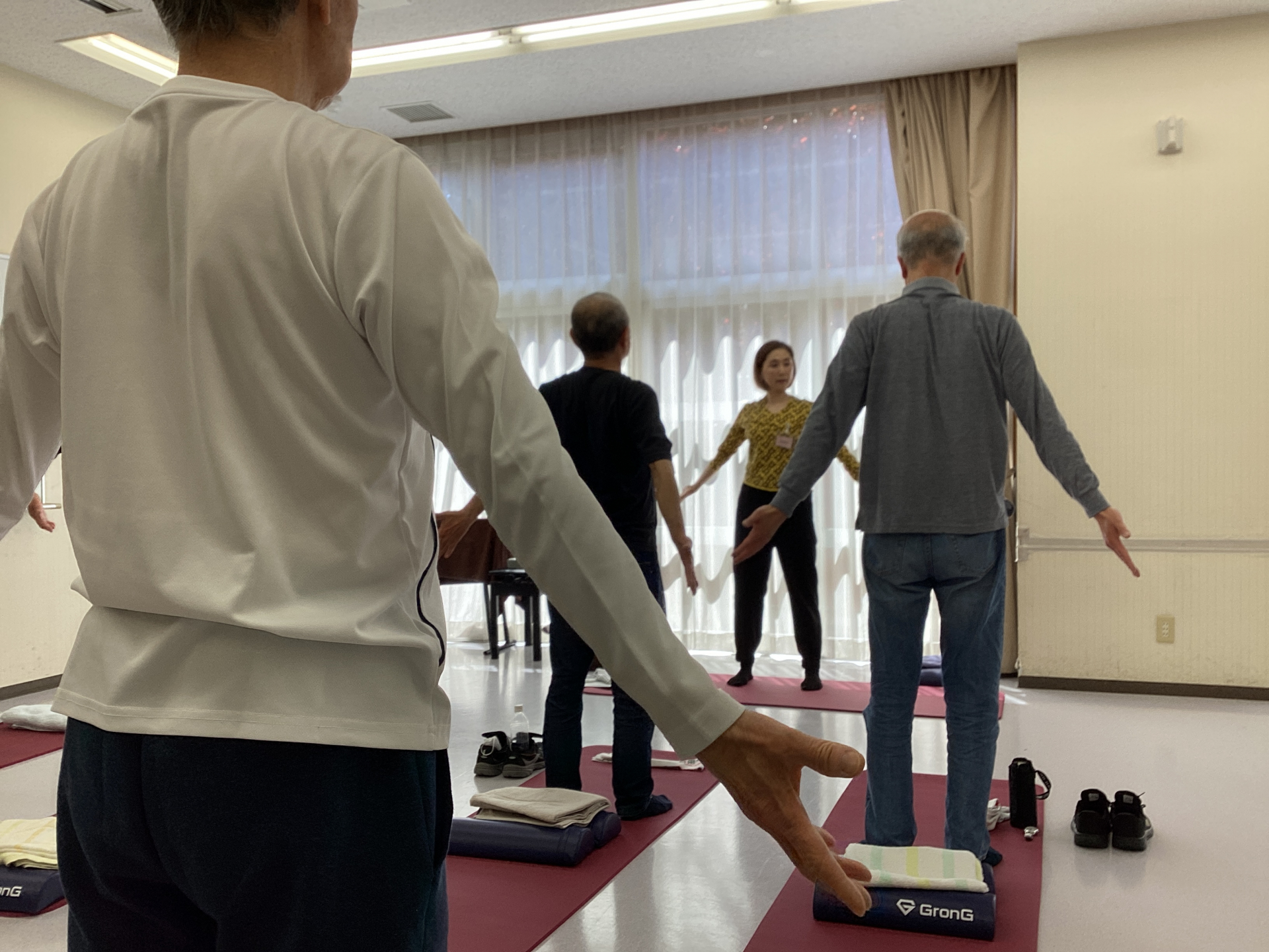 今回は男性だけのヨガ教室です! 講師はスポーツナースでもありシニアヨガのインストラクターでもある仙洞田美子先生です。