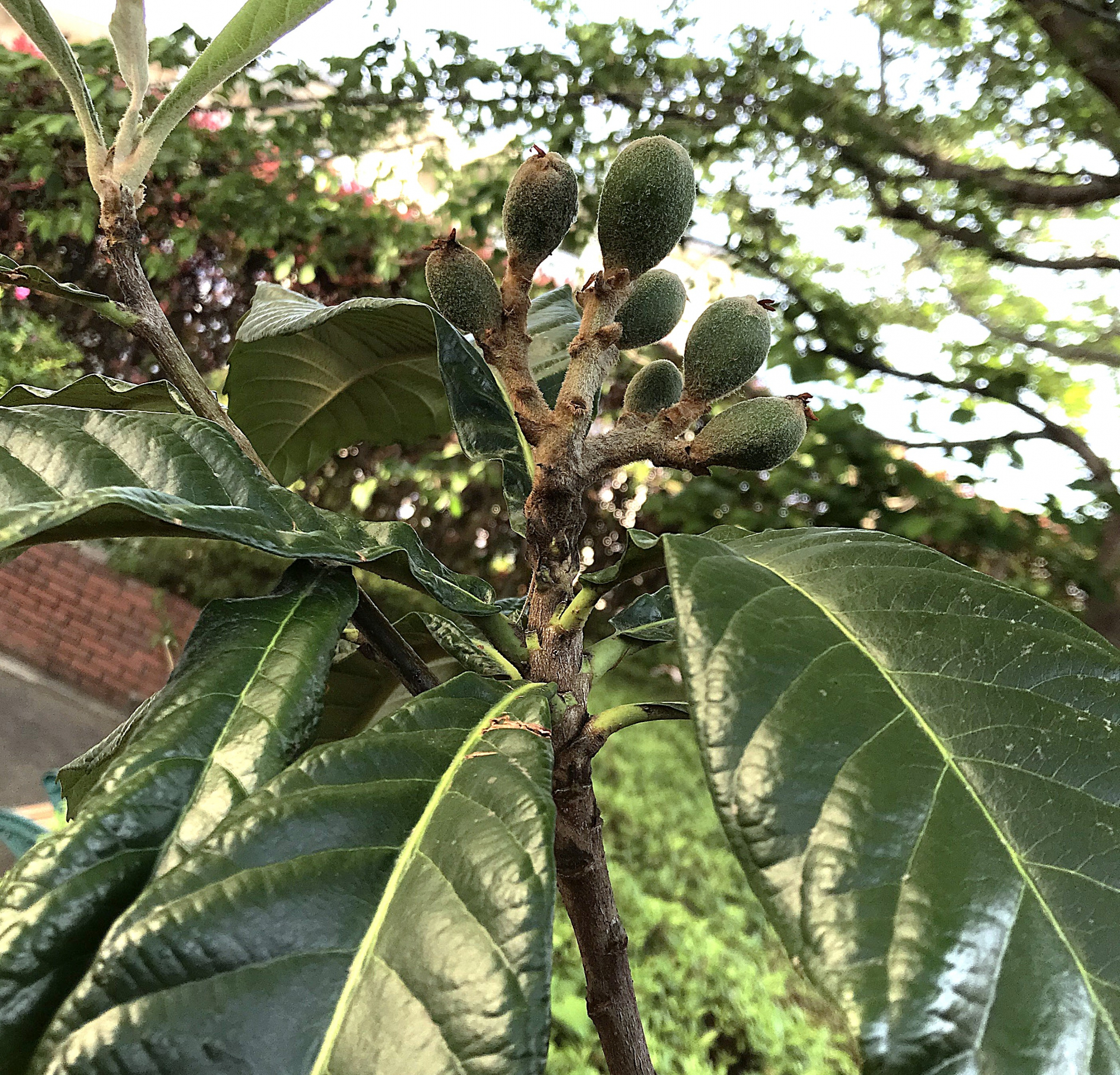 中庭にビワの実がつきました