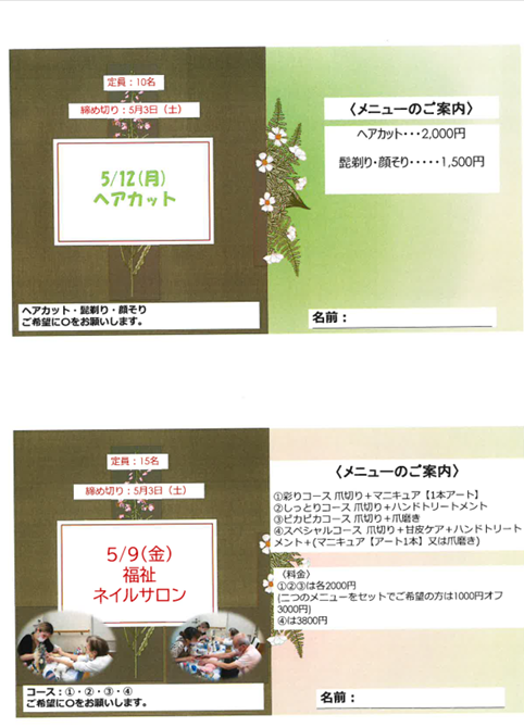 2025.12.19 NEW つやつやお寿司!! 活動報告 2025.12.18 今月のヘアカット ★ 活動報告 2025.12.16 今年もあいつがやってきた! 活動報告 2025.12.13 男子クラス 活動報告 2025.12.12 今月の福祉ネイル ★ 活動報告 2025.12.12 思い出しちゃいます 活動報告 2025.12.11 恋人はサンタクロース? 活動報告 2025.12.10 「講談」始まりました ★ 活動報告 2025.12.09 つばめの里・歌謡ショー♬ 活動報告 2025.12.08 このゲームはなんだろうな...? 活動報告 2025.12.06 「交通安全」 ★ デイサービス 2025.12.05 ~今年最後の落語鑑賞~ 活動報告 2025.12.04 送迎良景~イチョウ狩り ★ 活動報告 2025.12.03 もういくつ寝ると♪クリスマス ★ 活動報告 2025.12.02 つばめデイ新聞 2025年10月号 ニュース 1 2 3 … 27