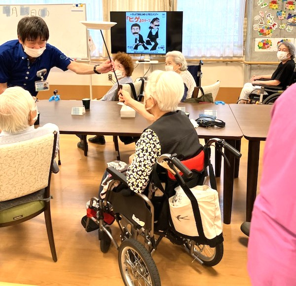 ご利用者様にも皿回しの体験いただき、「楽しかった」と好評でした。