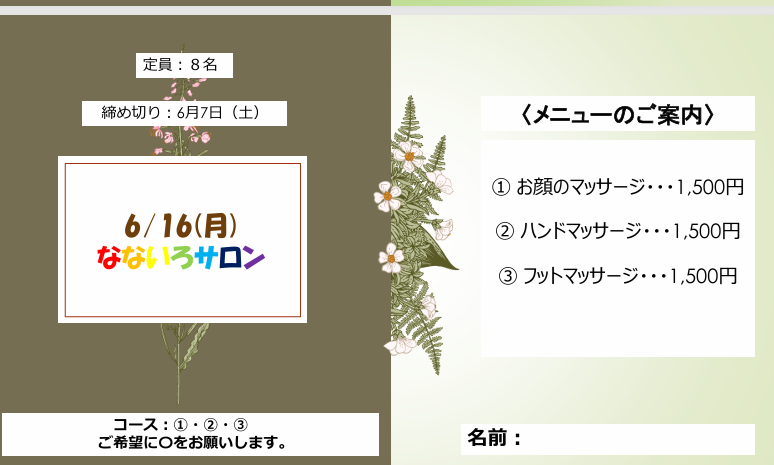 6月のなないろサロン開催のお知らせ