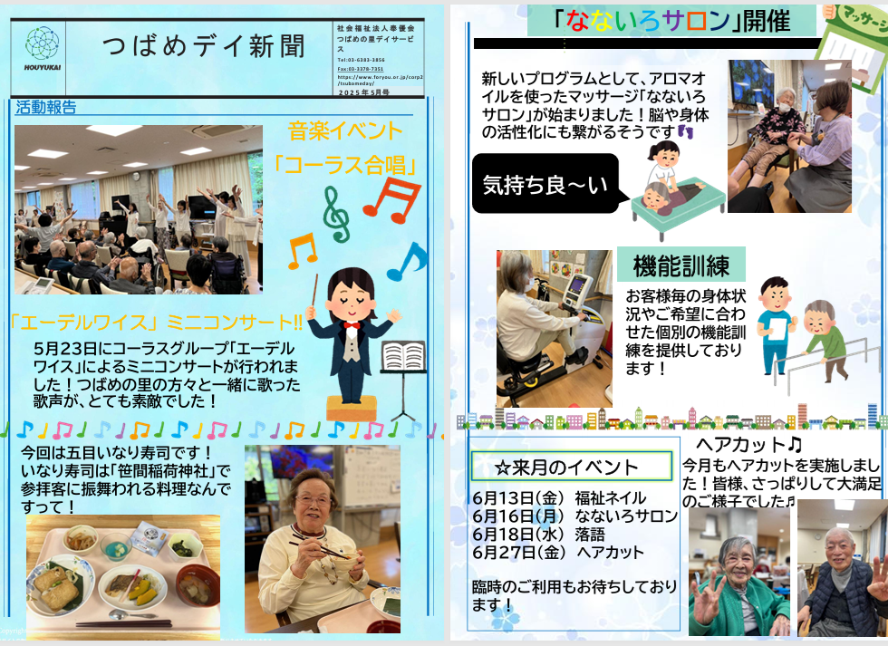 つばめの里デイより「つばめデイ新聞」2025年5月号が発行されました。