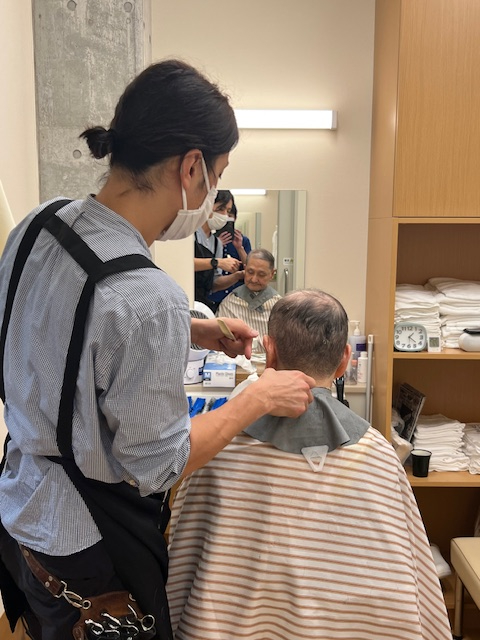 訪問美容師さんによるヘアカットを月に一回行っています。
