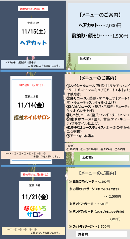 11月ヘアカット・ネイル・サロン開催のお知らせ