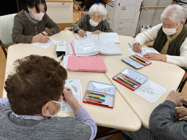 皆様、子供の頃に習字や塗り絵で遊んでいた頃を懐かしむ様に黙々と行っております(笑)