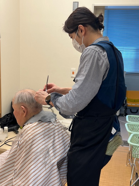 訪問美容師さんによるヘアカットを月に一回行っています。