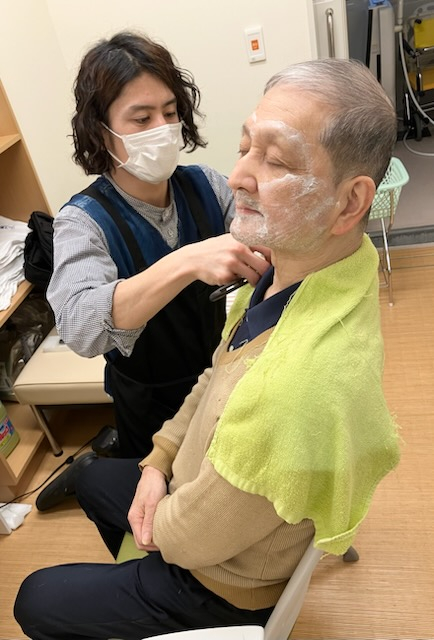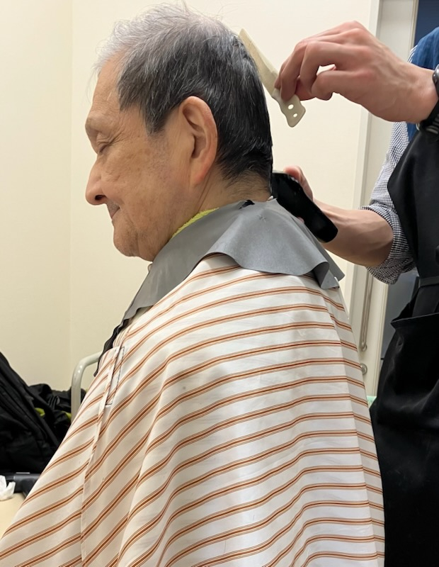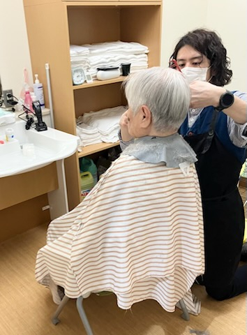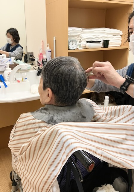 訪問美容師さんによるヘアカットを月に一回行っています。