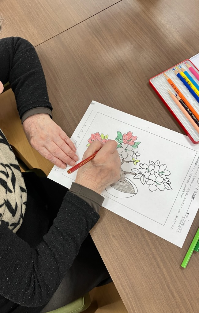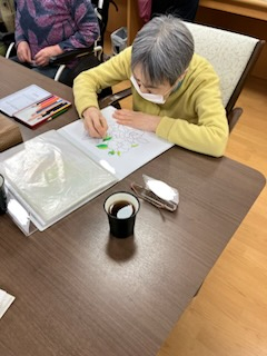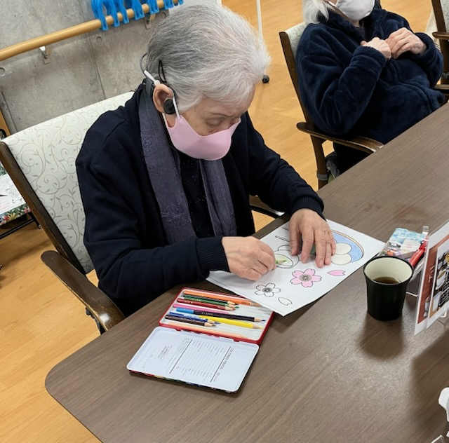 以前はお一人の方が熱心に塗り絵を行っていましたが、いつの間にか隣の方…隣の方へと…。