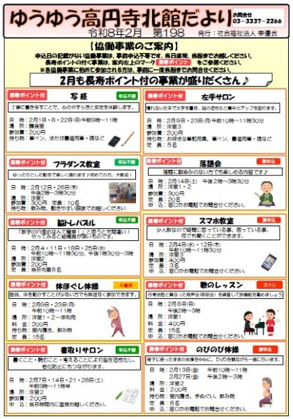 2月のゆうゆう高円寺北館の協働事業のスケジュールはこちらです!