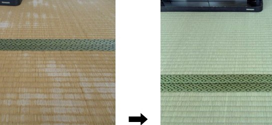 交換前の畳と比べると一目瞭然! 古い畳からは、たくさんの方に利用していただいた年月の重みのようなものを感じます。