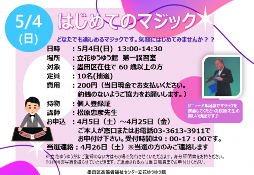 2025.12.09 ぬり絵とちぎり絵&編み物タイム 活動報告 #墨田区 #すみだ #sumida #立花ゆうゆう館 #みんなで楽しく 2025.12.09 みんな見てね! 立花ゆうゆう館だより 活動報告 #立花ゆうゆう館 #sumida #tokyo 2025.12.07 Instagramやってます 活動報告 #立花ゆうゆう館 #sumida #tokyo #インスタグラム 2025.12.07 白髭神社入口 活動報告 #立花ゆうゆう館 #区内循環バス #北東部ルート #白鬚神社入口バス停 2025.12.07 外看板 要チェックです 活動報告 #sumida #立花ゆうゆう館 #外看板 2025.12.06 ☆ストライク続出!?ボウリングゲーム 活動報告 #立花ゆうゆう館 #ゲーム #ボウリングゲーム 2025.12.04 ☆立花ゆうゆう館に小っちゃいサンタさん!? 活動報告 #立花ゆうゆう館 #クリスマス #可愛い飾り #手作り 2025.12.03 ☆毎週火曜日はぬり絵・ちぎり絵・編み物♪ 活動報告 #立花ゆうゆう館 #ぬり絵とちぎり絵 #編み物タイム 2025.12.02 ☆元気いっぱい♪Let’s Dancing 活動報告 #立花ゆうゆう館 #Let’s Dancing #楽しい! #元気いっぱい! 2025.11.30 ☆11月すみだ花体操表彰式 活動報告 #立花ゆうゆう館 #朝のすみだ花体操 2025.11.29 ☆まちかどコンサート開催♪ 活動報告 #立花ゆうゆう館 #立花まちかどコンサート #弦楽四重奏 #新日本フィルハーモニー交響楽団 2025.11.26 コレな~んだ?「立花陶芸クラブ」様 ~陶芸~ 活動報告 #陶芸 #立花ゆうゆう館 #sumida #tokyo 2025.11.26 [立花すっきり体操」開催しました! 活動報告 #立花ゆうゆう館 #sumida #tokyo #すっきり体操 2025.11.23 友だちの輪! 卓水会 ~卓球~ 活動報告 #立花ゆうゆう館 #sumida #tokyo 2025.11.23 秋本番! 小春日和 Part1 活動報告 #立花ゆうゆう館 # sumida #tokyo #お散歩コース 1 2 3 … 25
