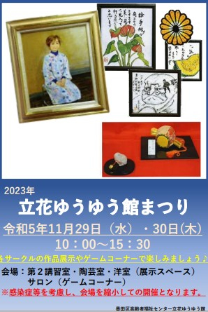 2023.11.13 お知らせ 【立花ゆうゆう館】立花ゆうゆう館まつり Tweet シェアする #墨田区 #すみだ #立花 #館 #粋 前の記事 2023.11.13 お知らせ 【立花ゆうゆう館】コンドー卓球クラブの紹介✨ 次の記事 2023.11.12 お知らせ 【立花ゆうゆう館】寒さに負けない!~すみだ花体操~ 一覧へ戻る
