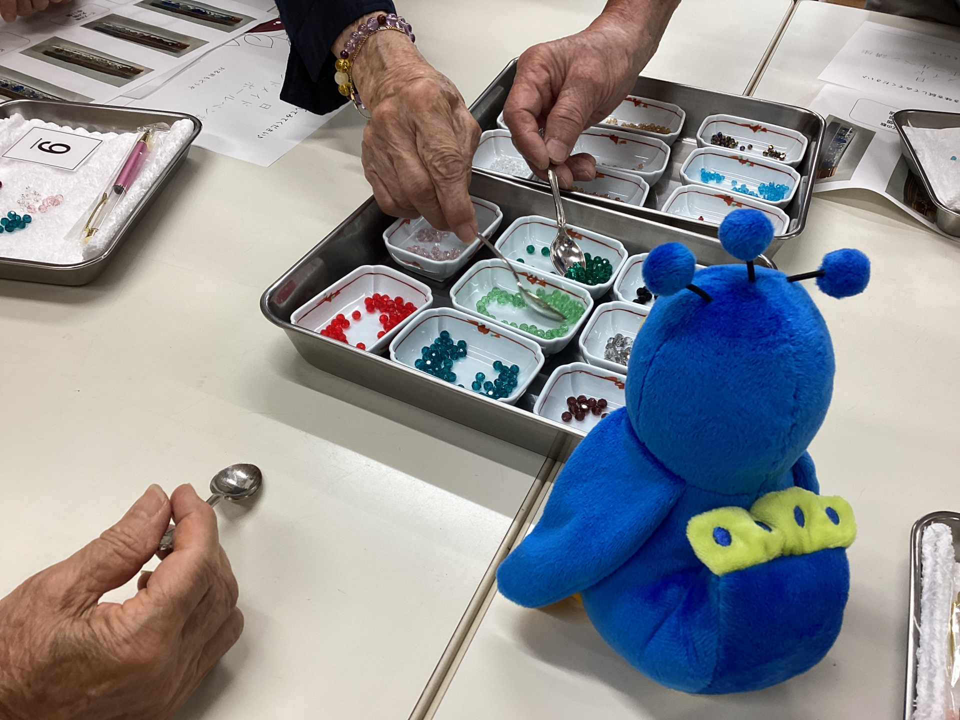 カラフルで大小さまざまなビーズを選ぶところからスタートです。