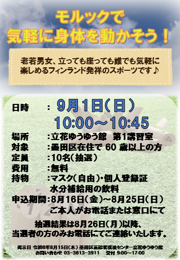 ☆モルックで気軽に身体を動かそう♪お申込みスタート☆
