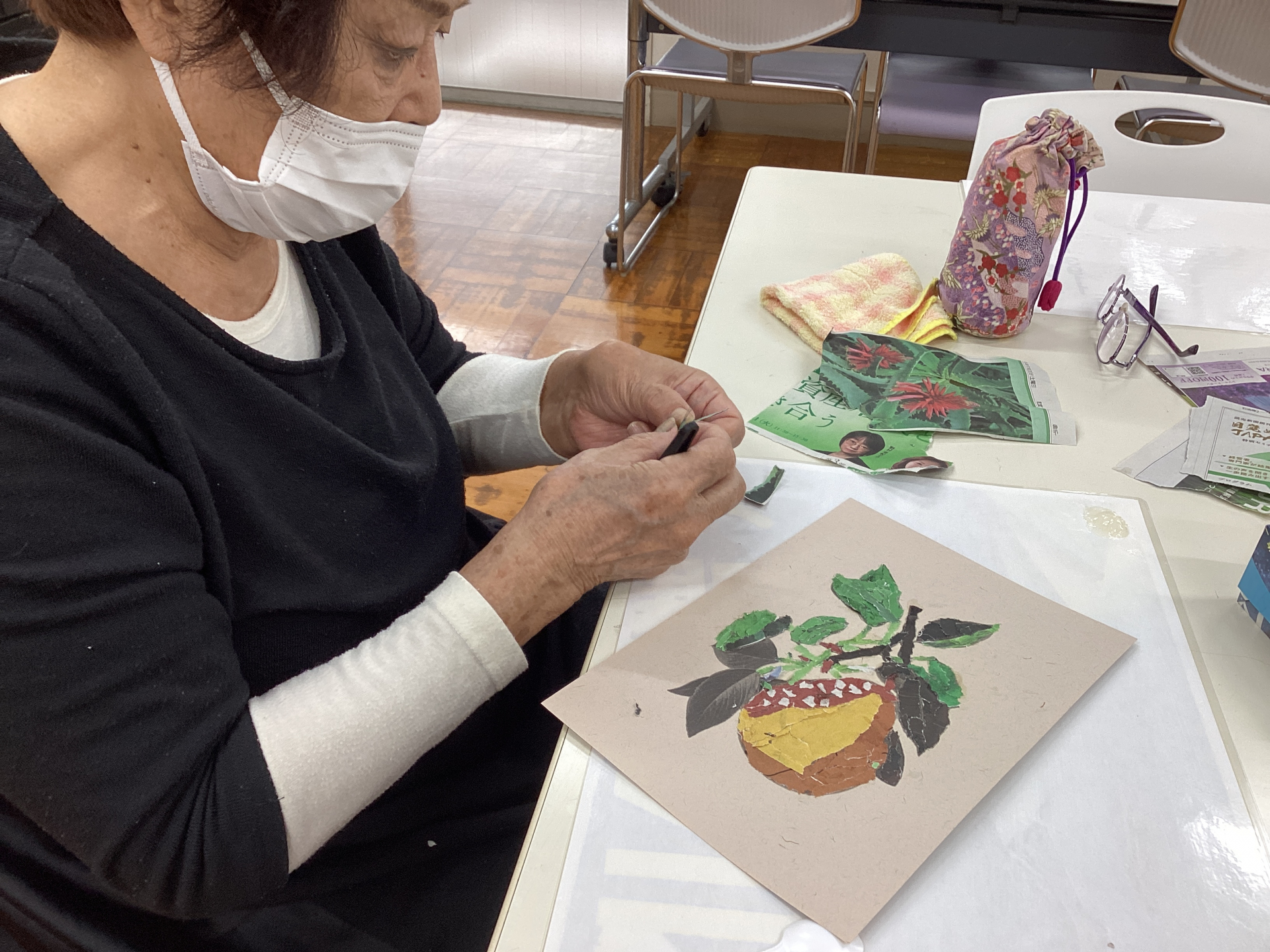 完成作品が続々と♩ぬり絵とちぎり絵のお時間です。