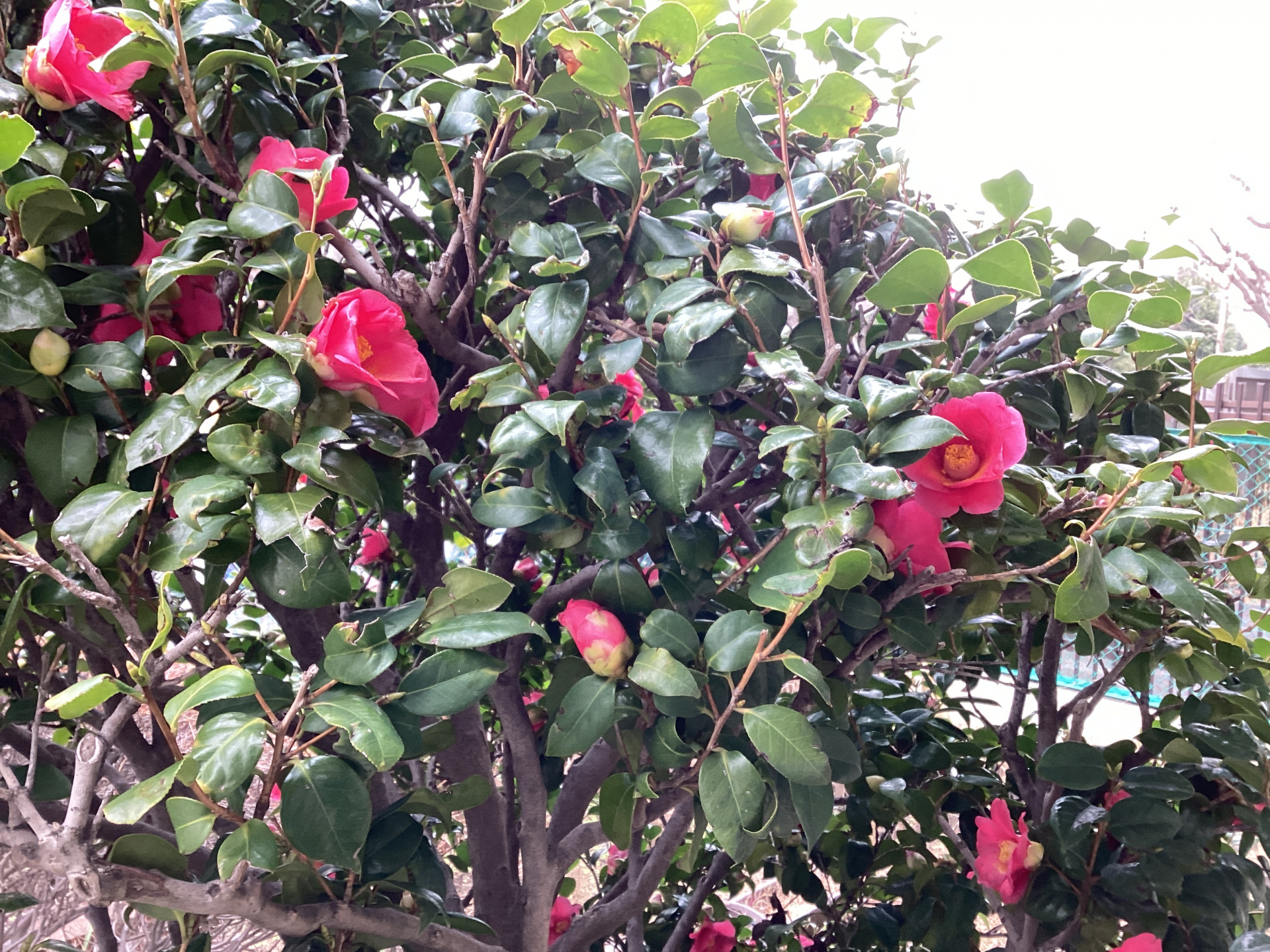 また、すぐ隣の公園にも寒椿が綺麗に咲いています。