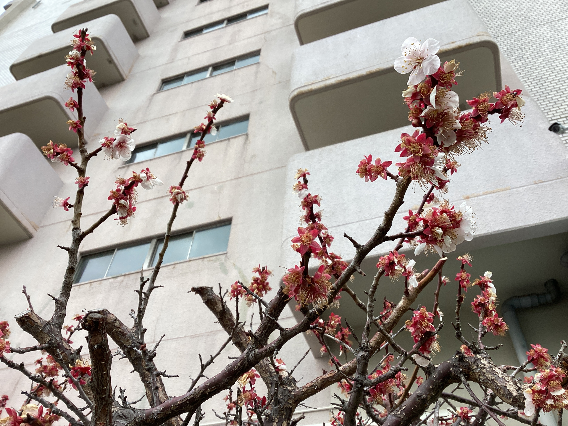 立花ゆうゆう館の玄関にある梅は少しだけ