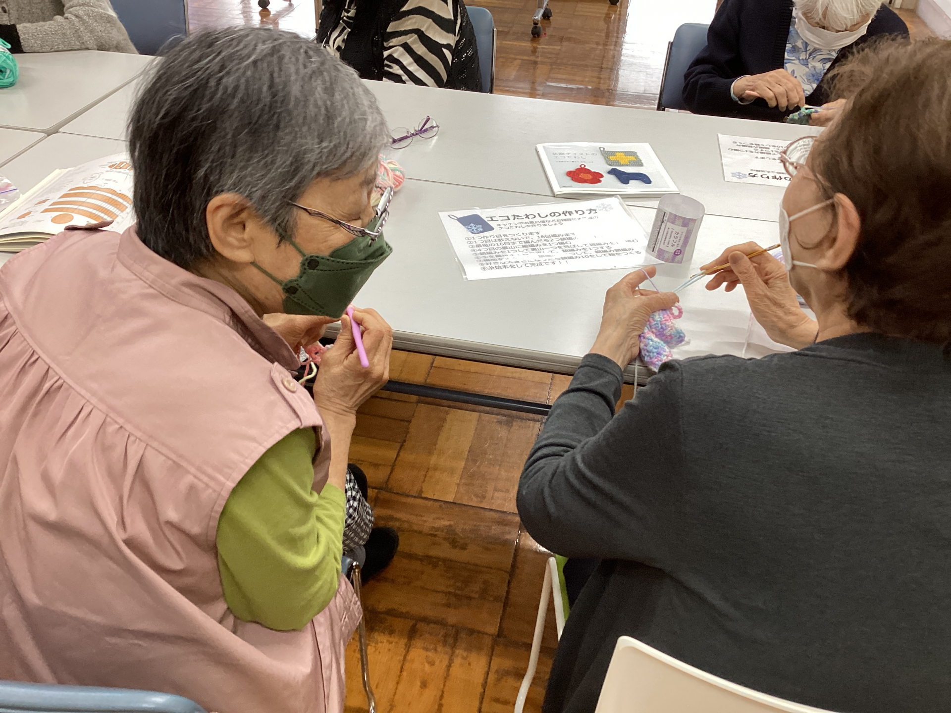 編み物初心者の方は(1回に限り)エコたわしを作っていただけますよ。