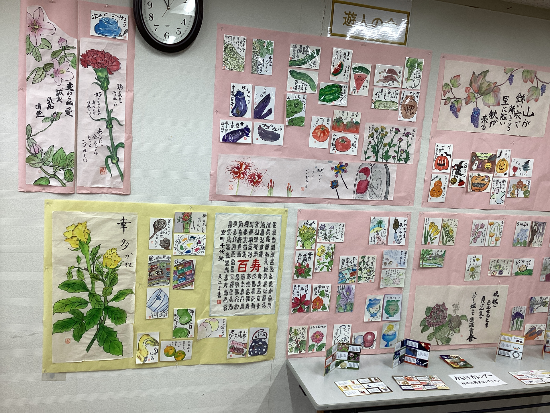 大きな作品とお互いに送り合った絵手紙を展示してくださいました。