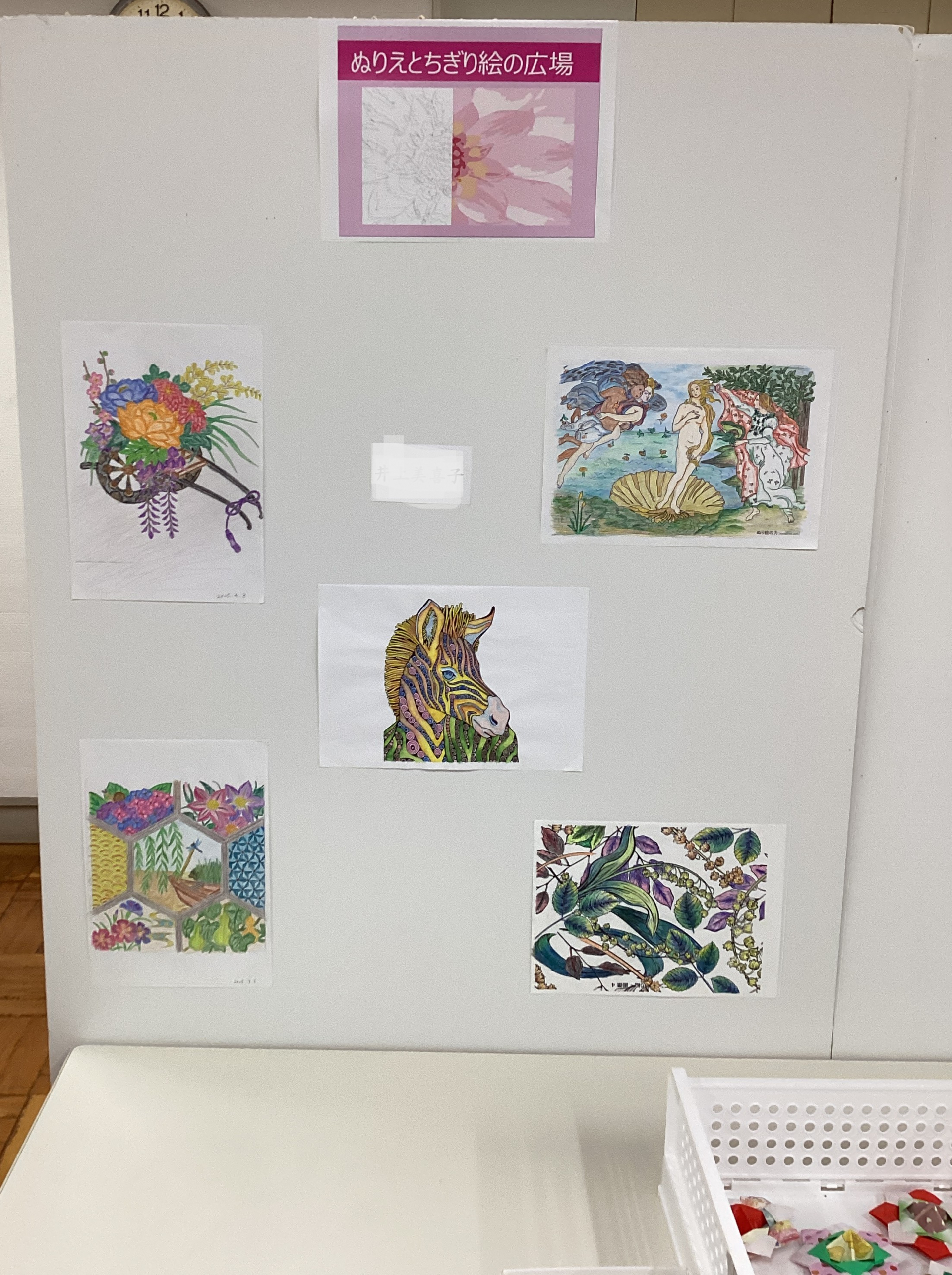 毎週火曜日に開催している「ぬりえとちぎり絵&編み物タイム」です。