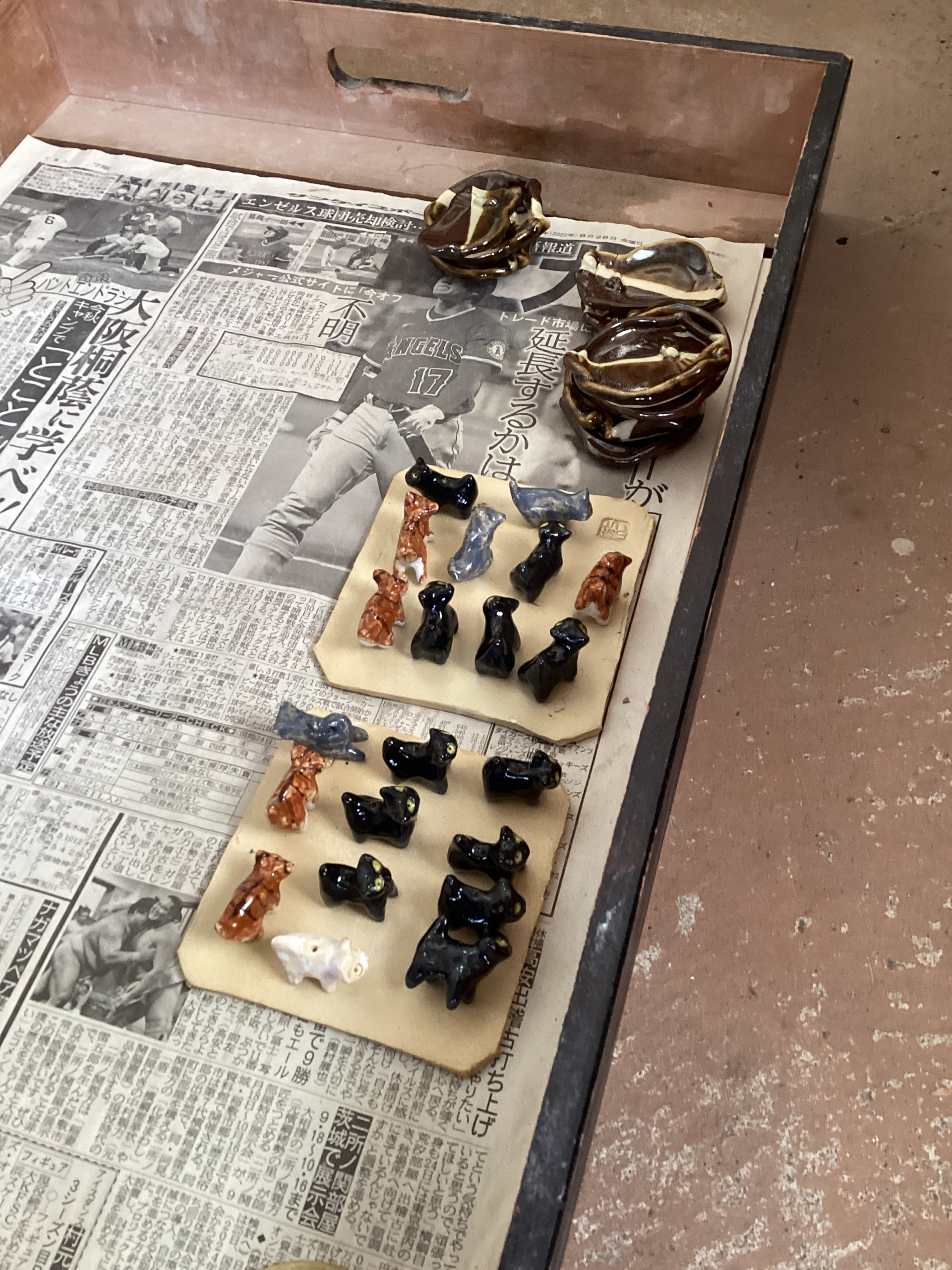 たくさんの猫ちゃんから大きな器まで皆さんそれぞれ色もカラフルで