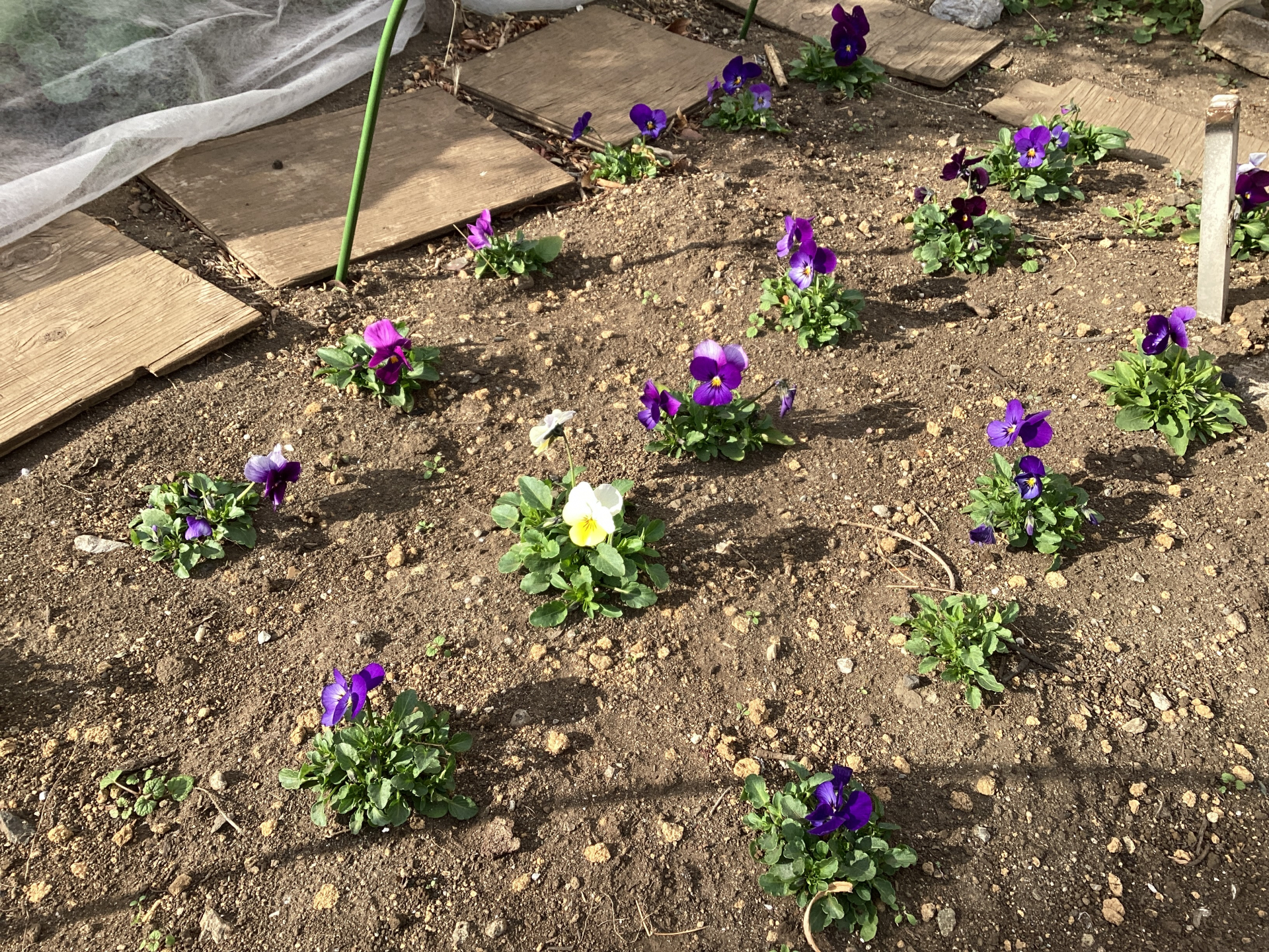 可愛いビオラたちがゆうゆう館にお越しの皆様を出迎えています。