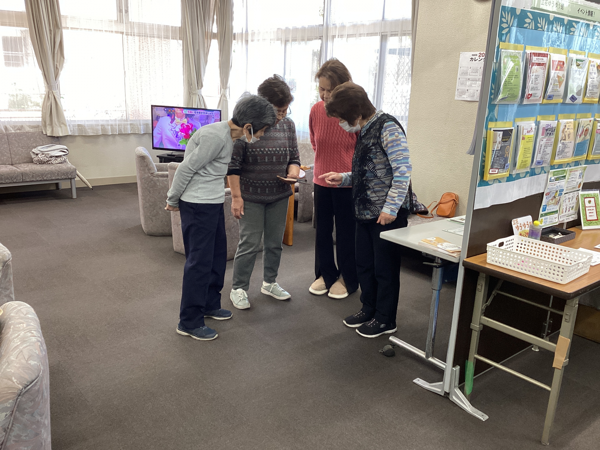 2026.04.03 NEW 活動報告 体操のあとは和やかなひととき Tweet シェアする 毎朝9:15からの体操が終わると、朝の団らんタイム。 サロンでお話をしたり、マッサージをしたり、ヘルストロンをしたり…。 お隣では昨日の自由盆踊りの復習をしていました♪ みんなで動画を見ながら ここはこうやって… ここはこうじゃないかな 等々、練習していましたよ! とっても楽しそうな午前のサロンでした♪ 立花ゆうゆう館 KN #立花ゆうゆう館 #サロン #朝のひととき 次の記事 2026.04.02 活動報告 4月も始まりました ~朝のすみだ花体操~ 一覧へ戻る