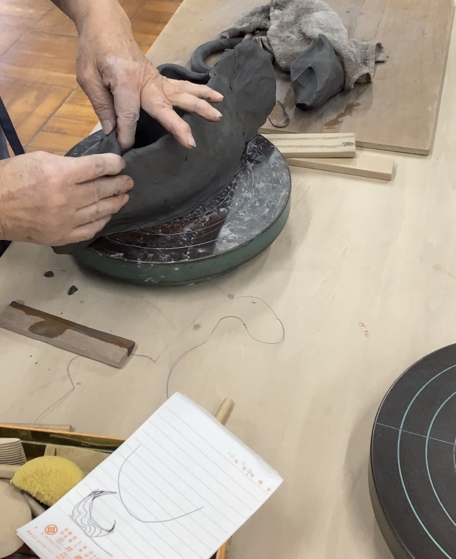 まずは粘土をこねて…。