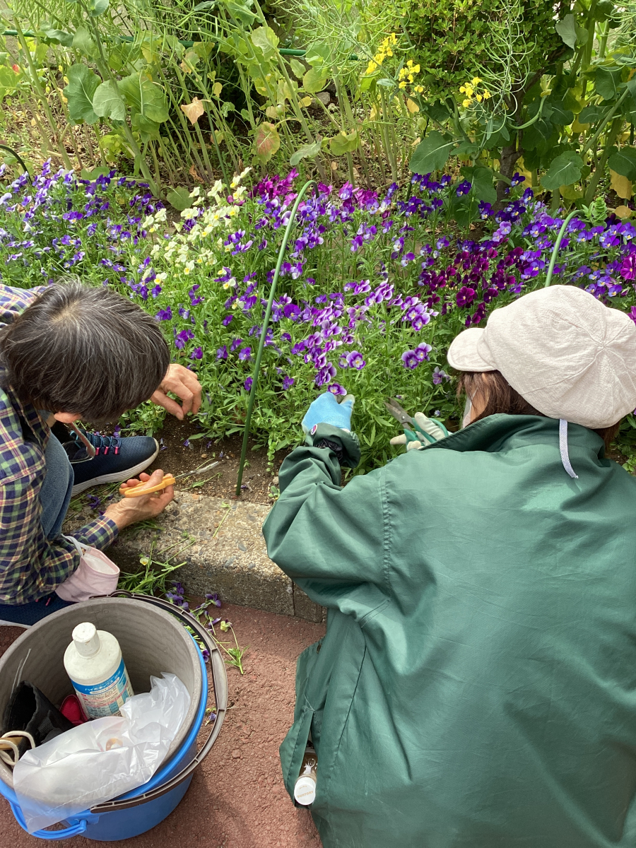 今日はそんな花壇の手入れにお二人が来てくださいました♪