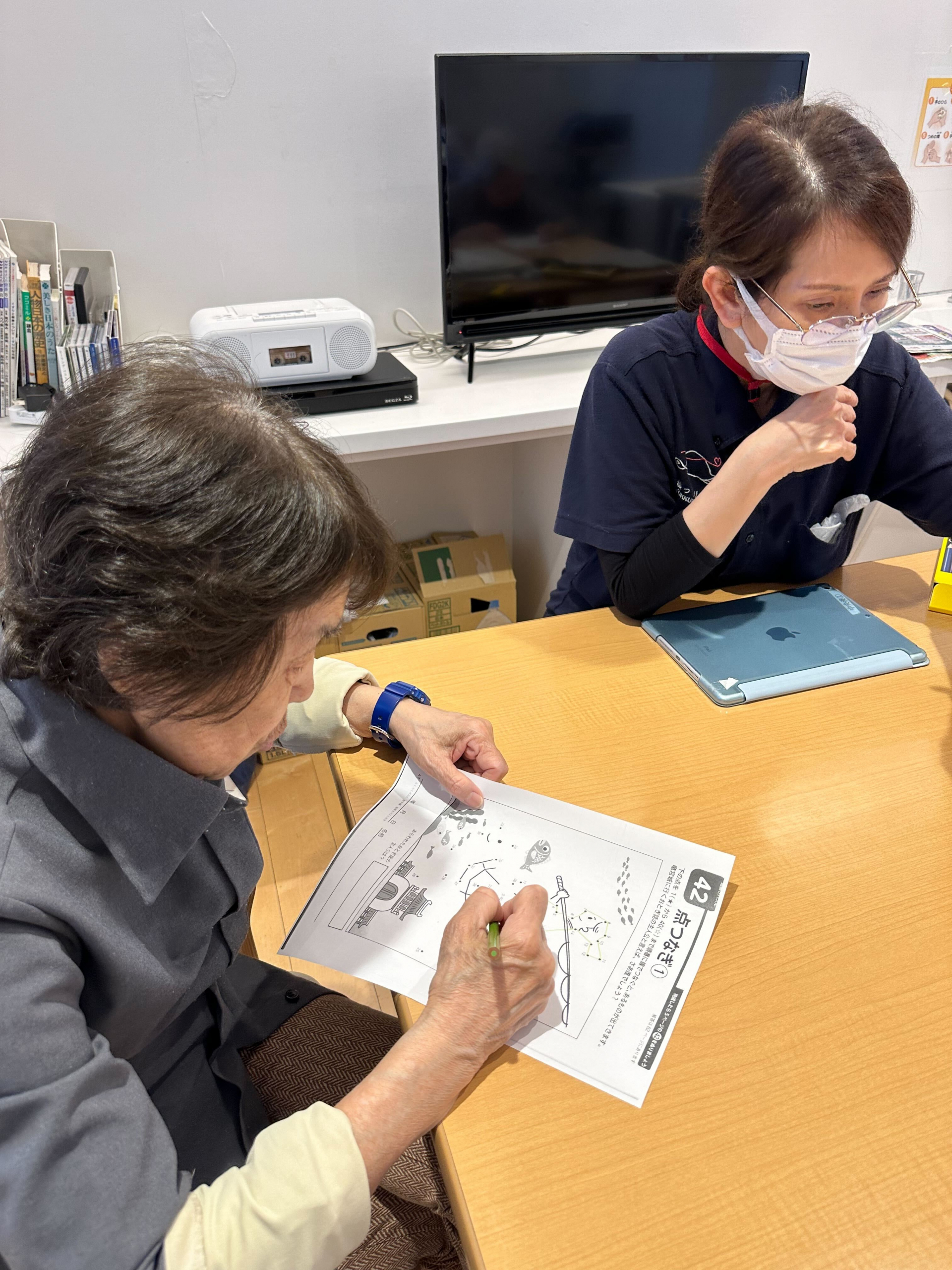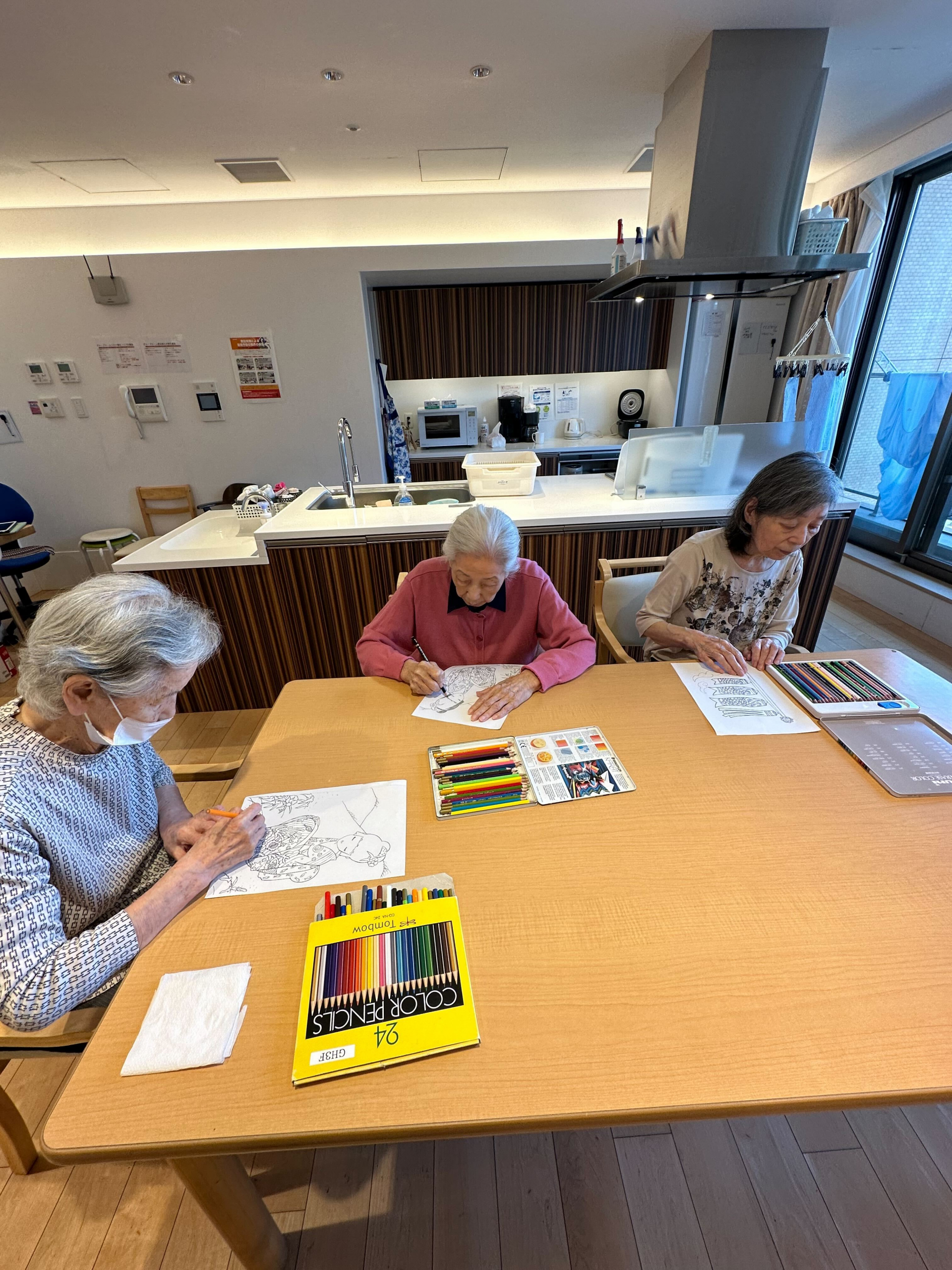 今日は塗り絵と点つなぎを楽しまれていたご利用者様の様子です。